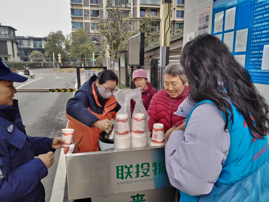 1月26日下午,东城试验区锦云社区携手联投物业公司在辖区小区内开展“暖心腊八”活动,为居民免费派送精心熬煮的腊八粥,用热气腾腾的美味传递冬日融融暖意与诚挚节日祝福。