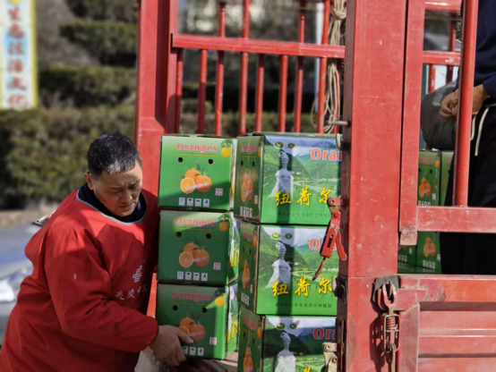 此次年终物资发放实现409户村民全覆盖,其中每户发放一箱柑橘,每人发放一袋30斤的大米和10斤的食用油。发放现场,工作人员分工明确,提前将筹备好的物资摆放整齐,引导大家有序领取物资。