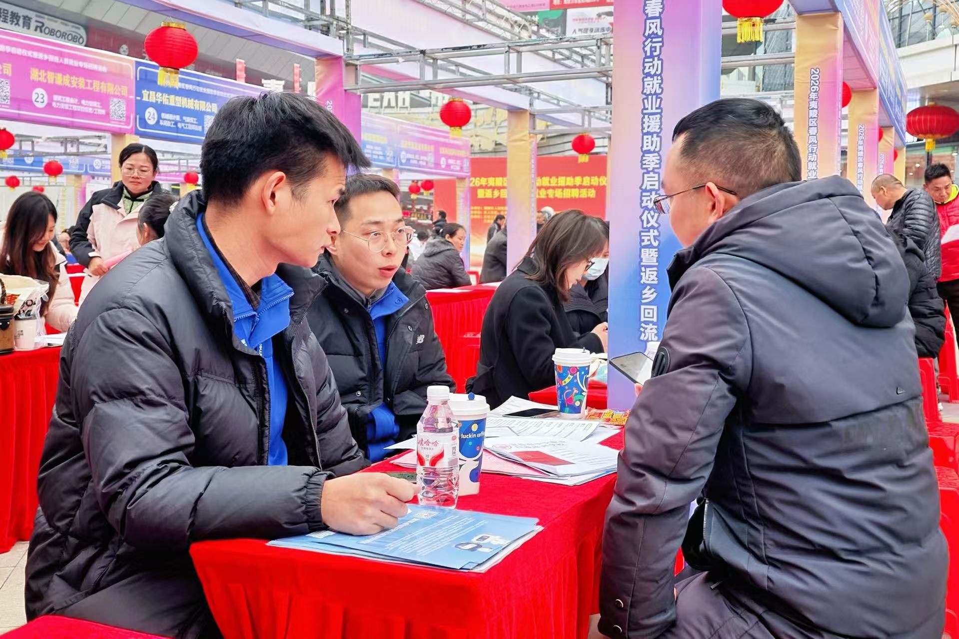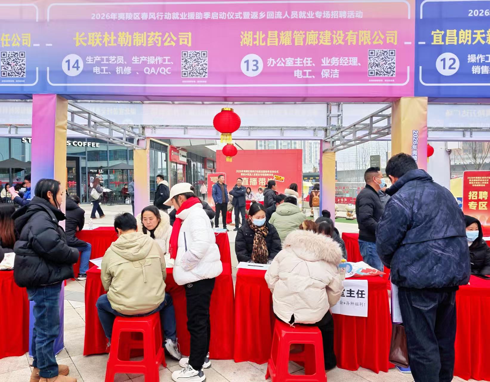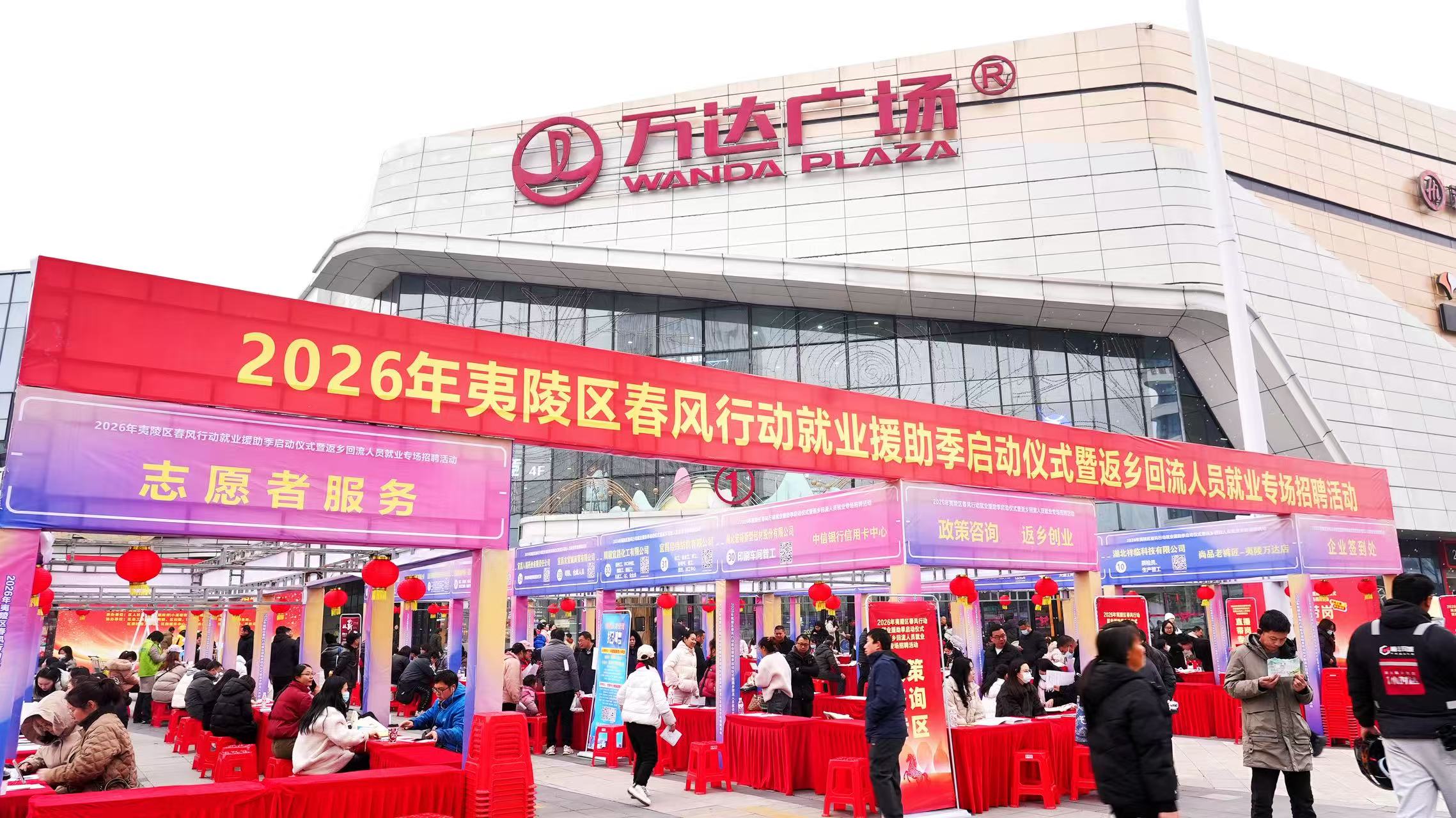 1月28日下午,夷陵万达广场内人头攒动,暖意融融。夷陵区2026年首场“春风行动暨就业援助季”启动仪式暨返乡回流人员就业专场招聘会在此举行。60余家本地企业携1500多个岗位亮相,为返乡农民工、高校毕业生、就业困难人员等群体搭起就业桥梁。