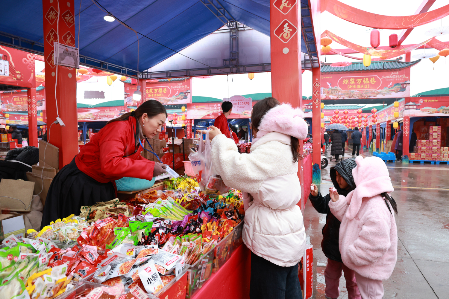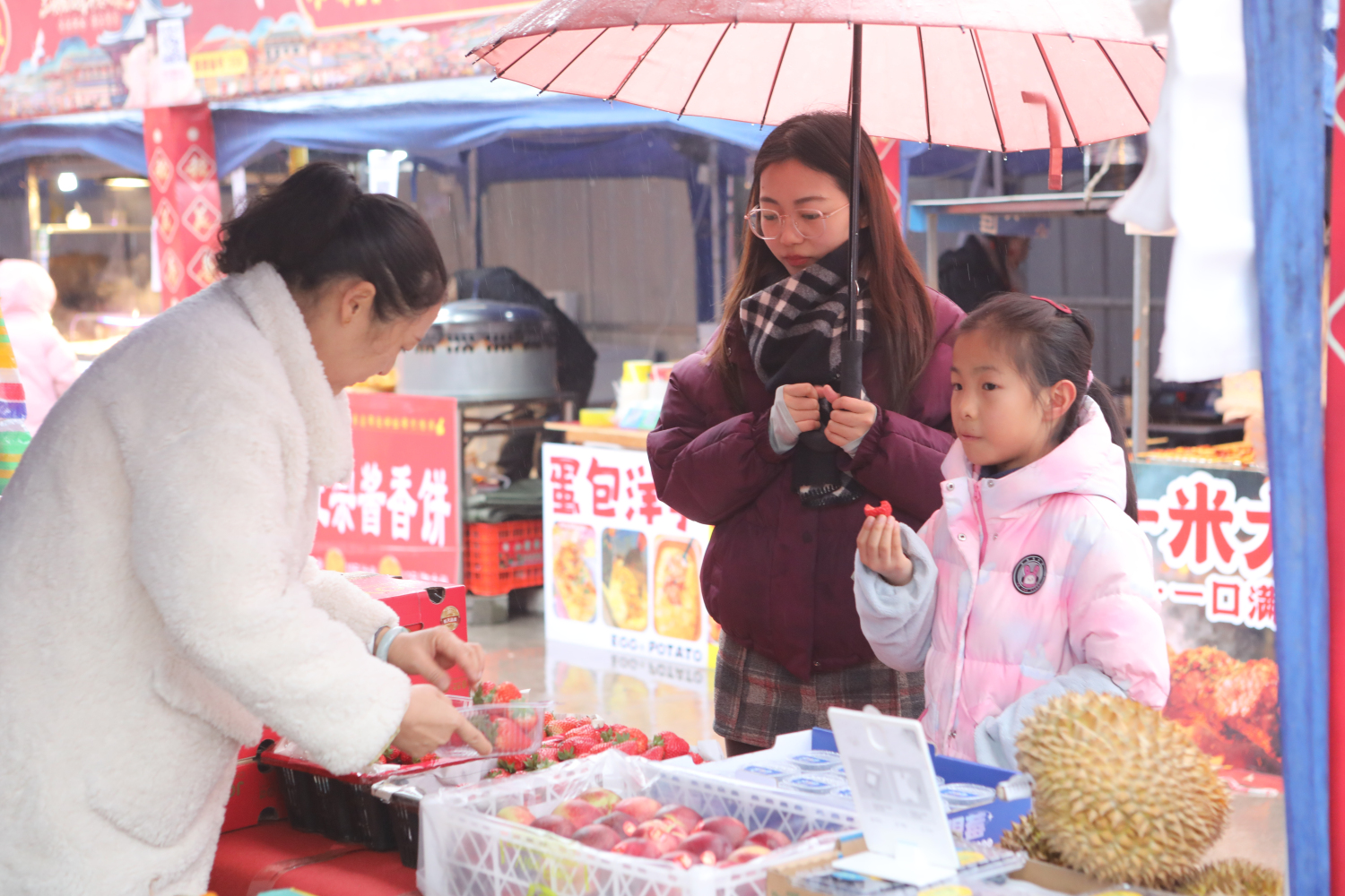 除了酒水展区,其他街巷同样购销两旺。在“瑶池果蔬巷”,来自全国各地的精品水果色泽诱人,智利车厘子、泰国榴莲、新疆香梨等应有尽有;“千珍御膳巷”各类精品粮油、南北干货、调味香料等商品丰富齐全,吸引众多消费者驻足选购;“上元美食巷”飘来阵阵香气,萝卜饺子、炕土豆、烤苕皮等宜昌特色小吃现做现卖,令人垂涎欲滴。