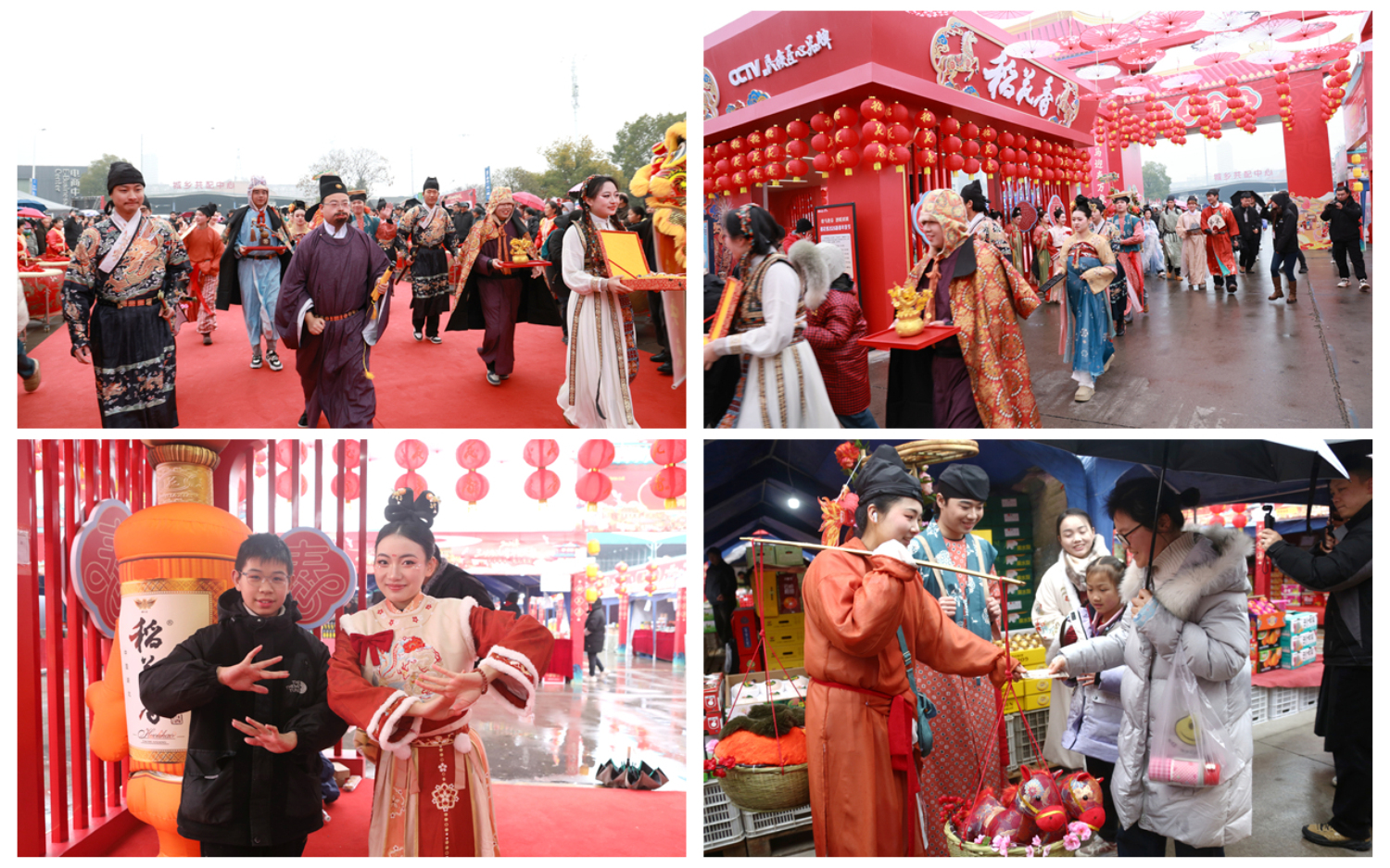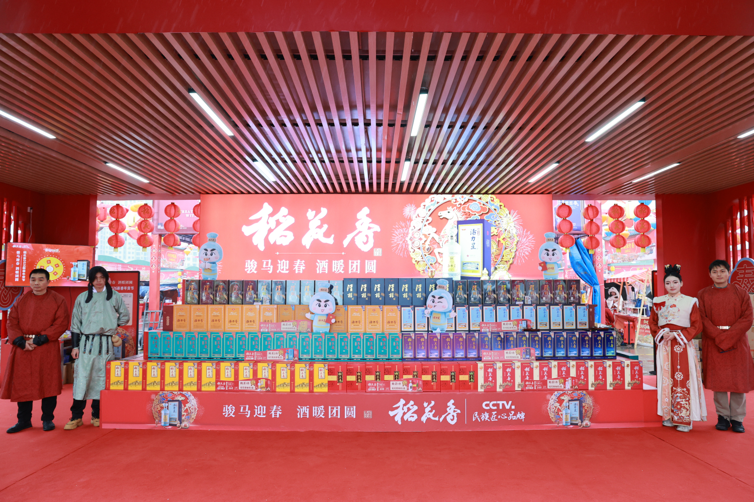 活动现场,各个主题街巷人潮涌动,年味十足。在“琼浆万福巷”核心展区,稻花香展位格外醒目。以大红色为主基调的展馆设计,营造出热烈、喜庆、祥和的氛围,氤氲着浓郁的年味。