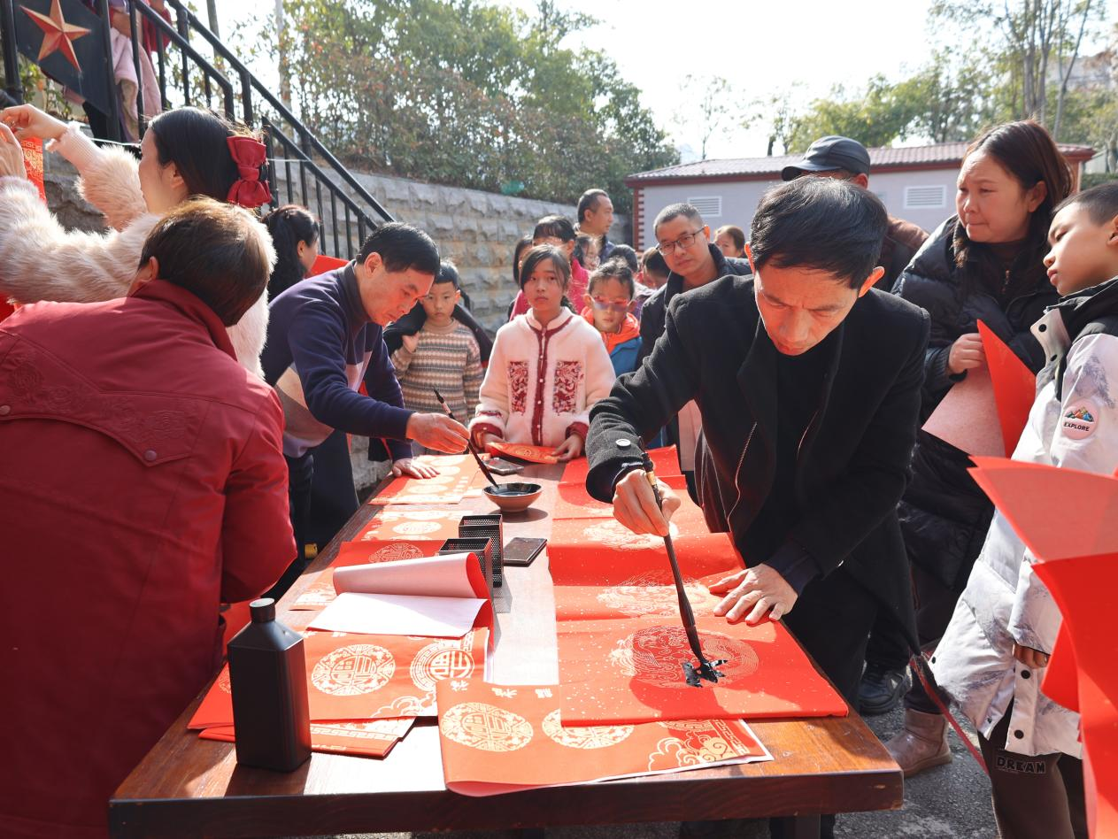 活动中,茶文化宣讲、文艺轻骑兵音乐表演轮番上演,区书法家协会志愿者现场挥毫送福,图书馆专属“集马卡”活动也吸引众多青少年踊跃参与。现场共送出春联近百幅、集马卡百余张,200余名市民热情参与,年味与文化味交织,成为群众家门口的特色文化年礼。