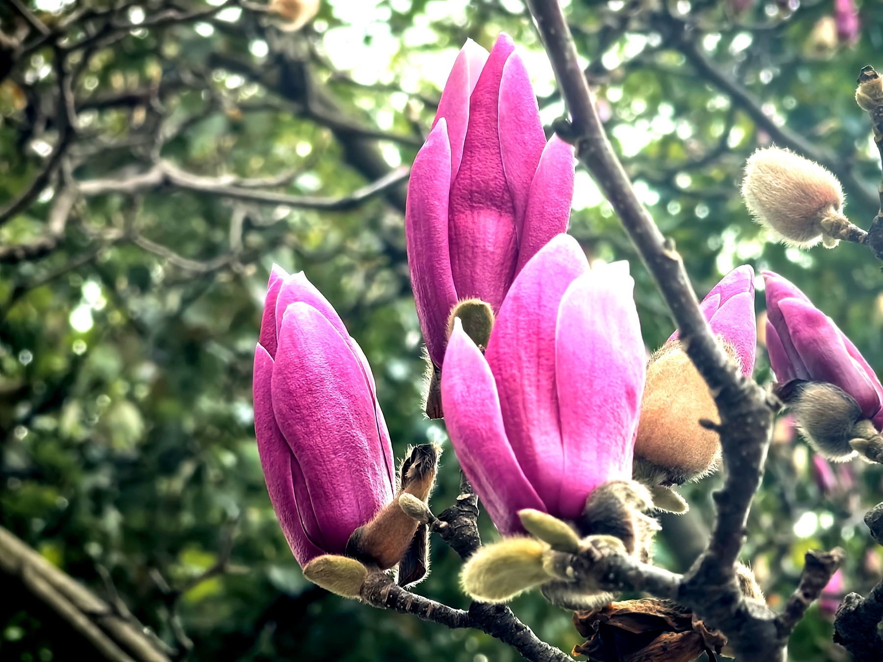 据园林专家介绍,受近期气温回升影响,今年玉兰的花期较往年有所提前,目前正值最佳观赏期。玉兰花期较短,单朵花期仅7天左右,若遇雨天花瓣易脱落。专家提醒,市民可趁着晴好天气,与春天来一场浪漫邂逅,莫负这大好春光。