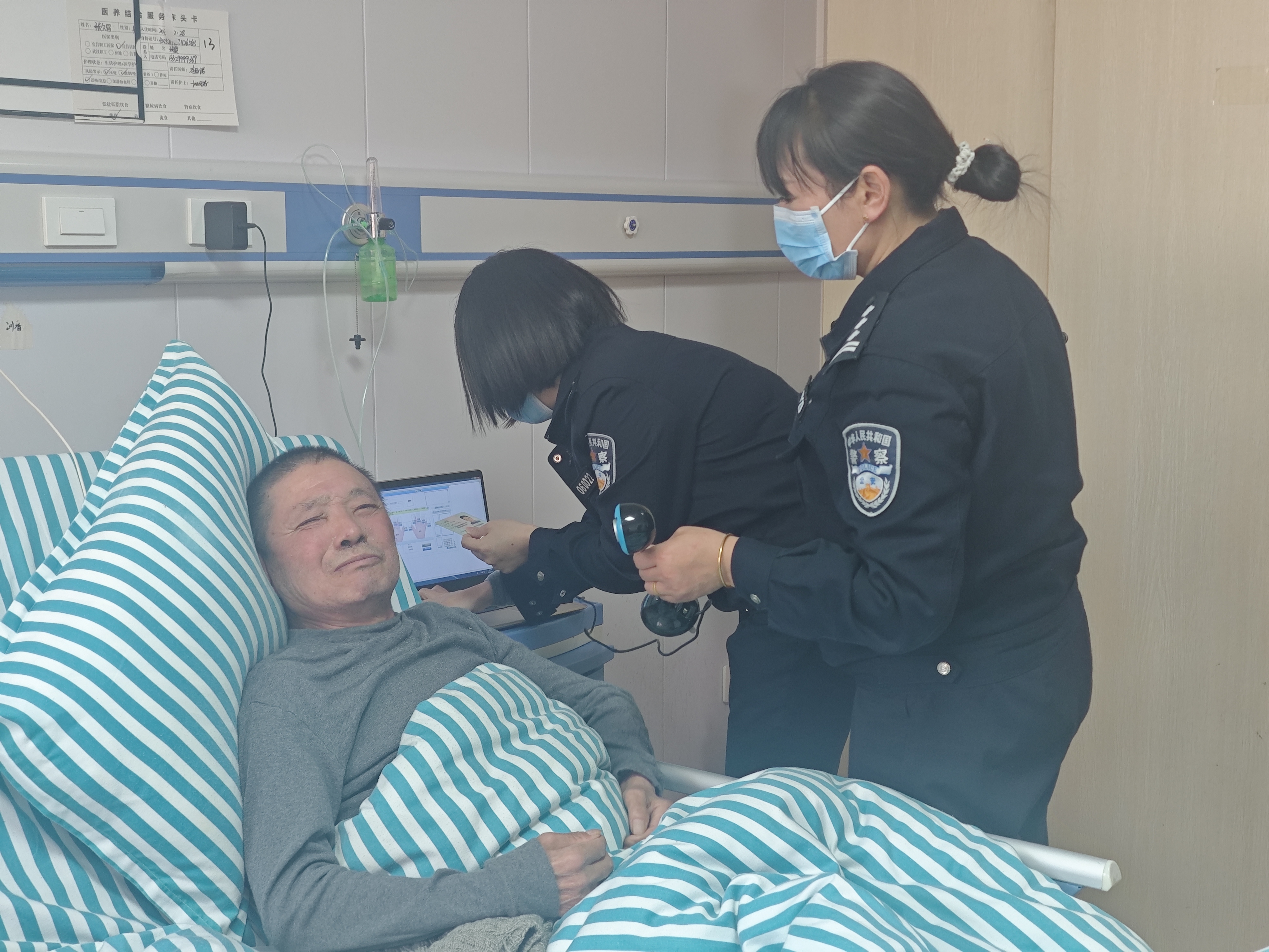 据了解,2位老人因身体原因长期卧床,无法前往政务服务中心办理身份证,村委会得知情况后,迅速联动公安部门。现场,村干部和民警耐心地为老人调整姿势,精准采集信息。
