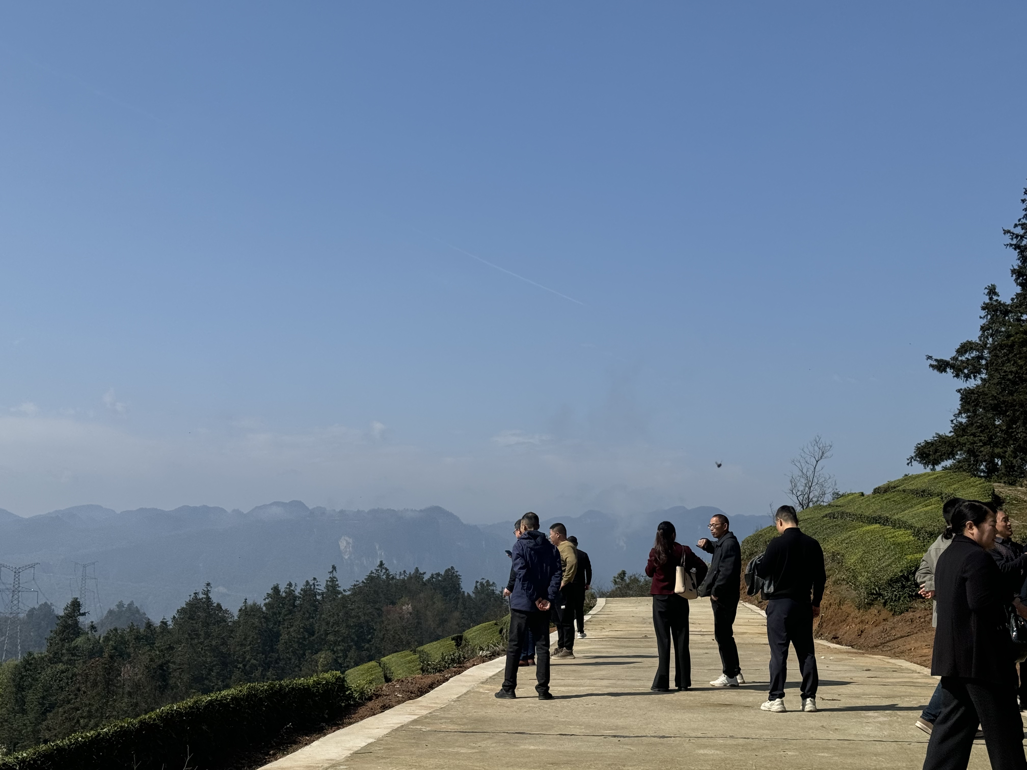 上午9点30分,全体党员到达三斗坪镇秋千坪村仙鹤观茶园,实地参观茶叶种植基地,详细了解茶产业在带动村民增收、推动乡村振兴中的积极作用。随后,大家前往中堡村高峡平湖观景平台,站在观景台上远眺壮丽峡江风光,感受三峡工程带来的巨大变迁和家乡日新月异的发展成就。参观过程中,党员们边走边看、边听边问,对家乡的发展变化由衷赞叹。
