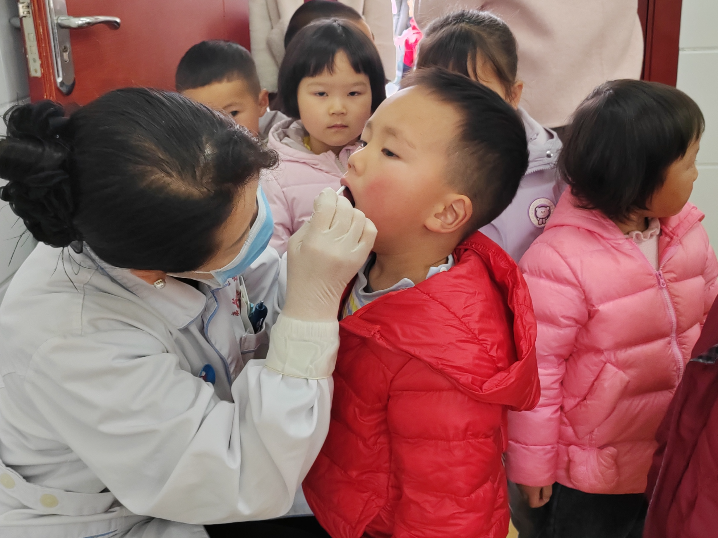 本次体检涵盖视力筛查、听力筛查、骨密度检测、脊柱侧弯检测、牙菌斑检测等多个项目,由专业医护团队负责实施。体检过程中,医生用亲切的语言与孩子们沟通,耐心细致地为每一位幼儿检查,认真记录各项数据;老师们全程暖心陪伴,及时安抚和鼓励幼儿,现场秩序井然。