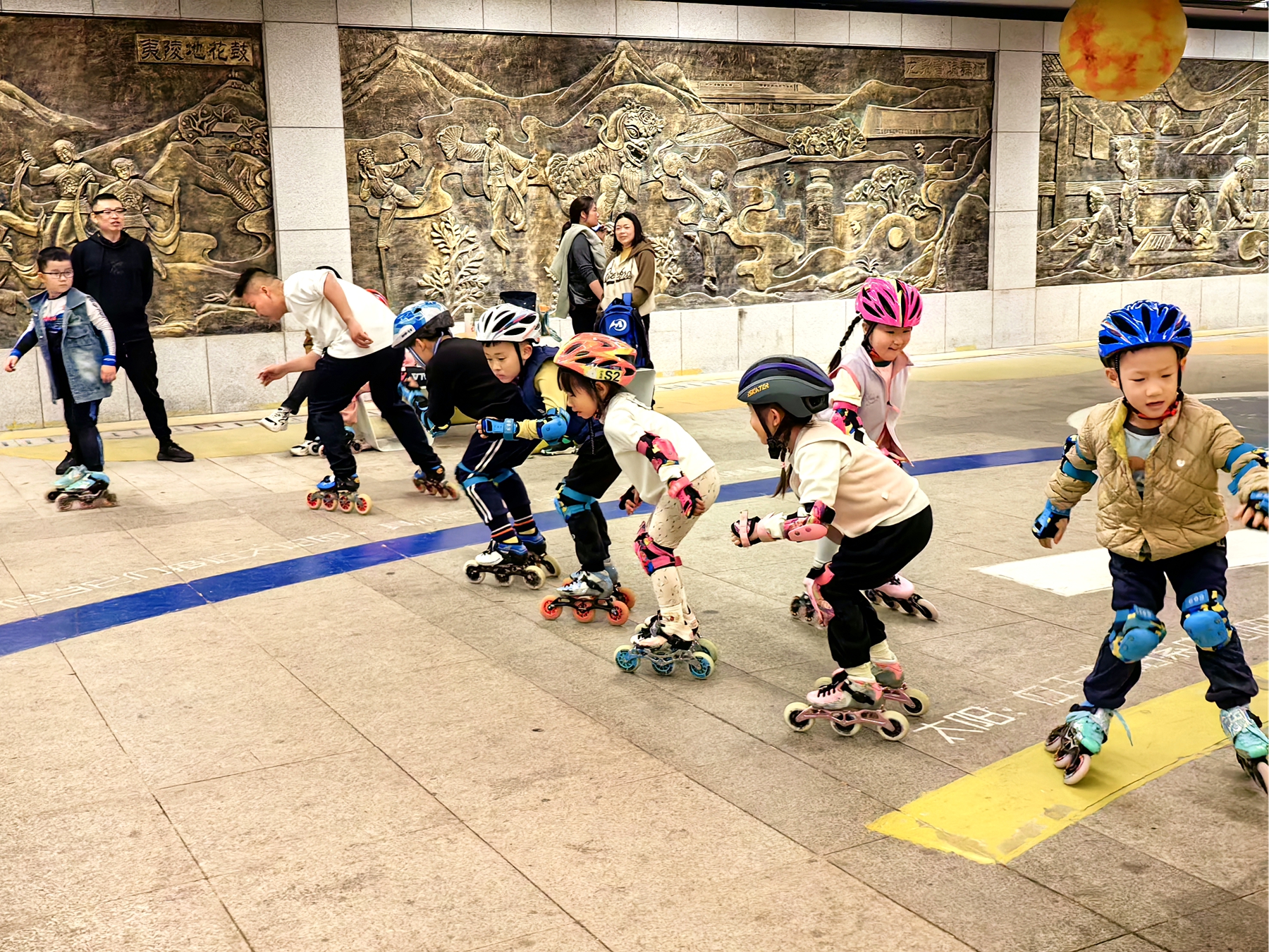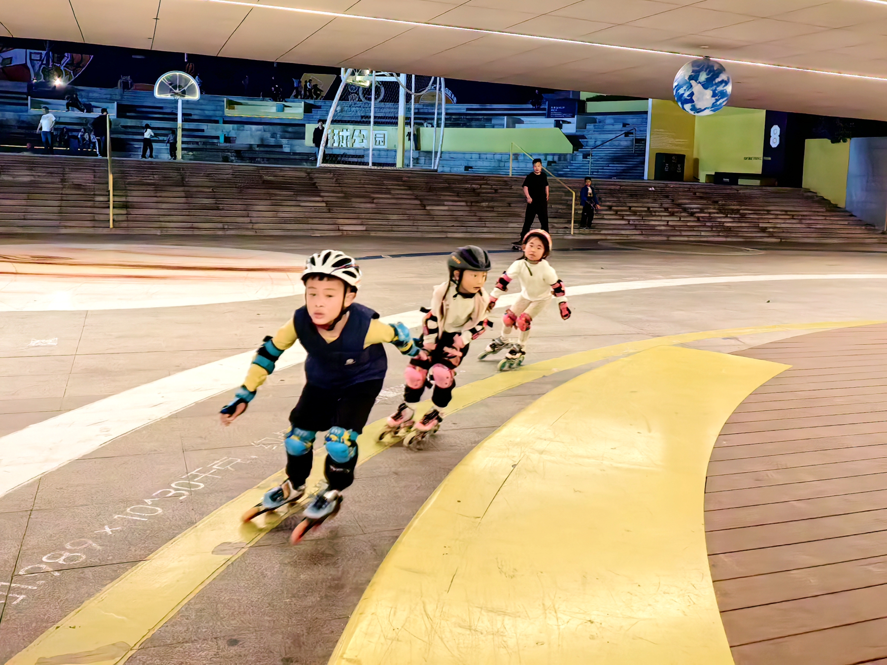 孩子们穿戴好护具与轮滑鞋,从站稳脚跟、缓慢试滑到逐渐掌握平衡,沿着环形路线自在穿梭,每一次流畅的滑行,都藏着孩童对世界最纯粹的探索欲。