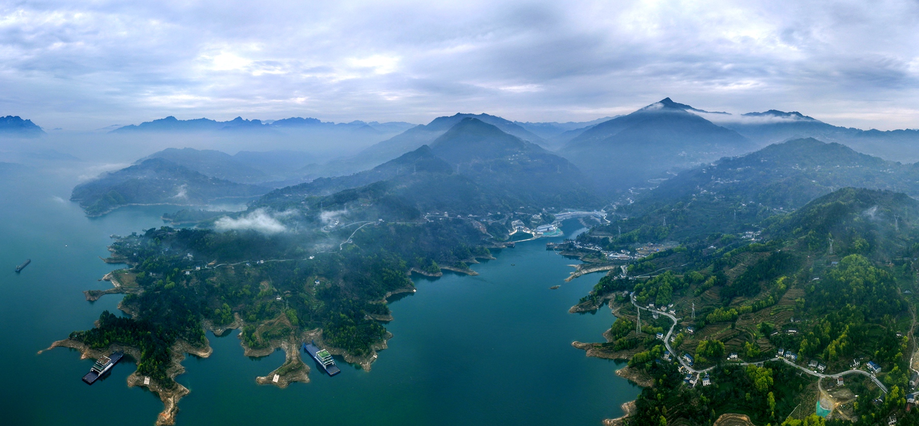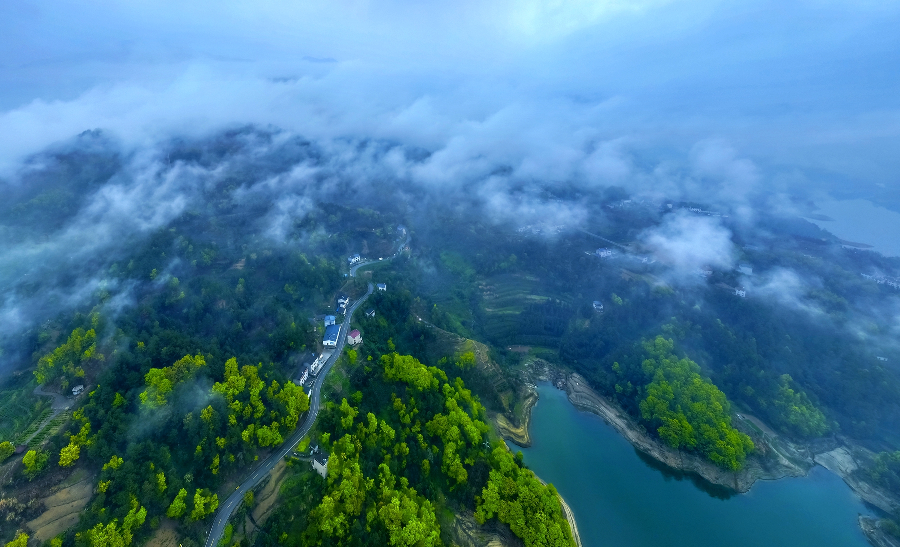 4月2日,三峡坝前秭归站水位165.14米,较2025年10月24日蓄水至175米高程,消落期水位已下降近十米。一涨一落间,三峡坝首第一镇——宜昌市夷陵区太平溪镇溪河景观变幻万千,云海相伴、茶香四溢,绘就库区独特生态画卷,成为三峡坝区新晋网红自然景观。