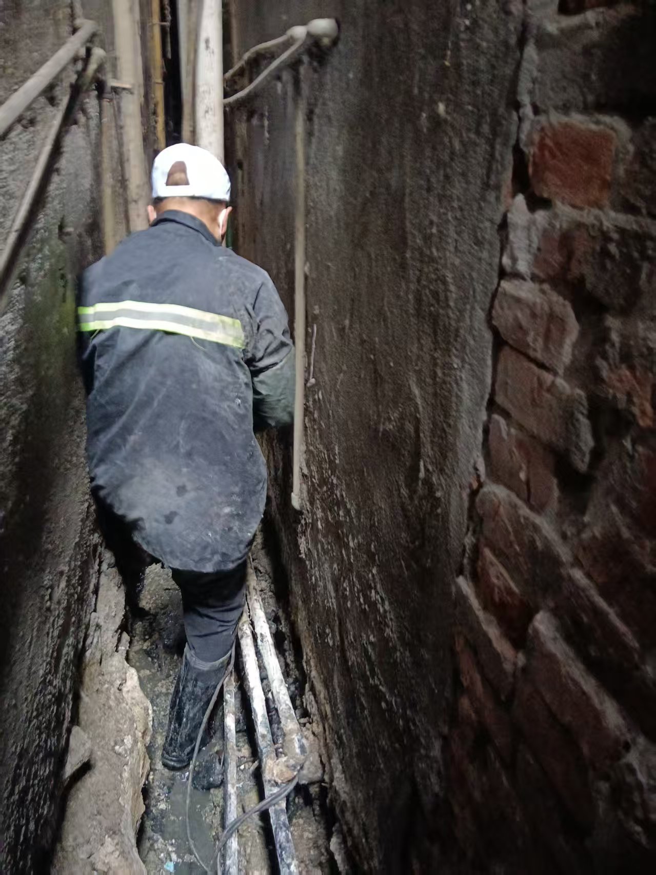 此前,该处共用污水沟发生严重堵塞,且堵塞点位于房屋背面的狭窄夹缝中,施工难度极大,居民无力自行疏通,生活受到严重影响。接到反映后,社区迅速介入,工作人员第一时间赶赴现场勘查,并逐户上门沟通。