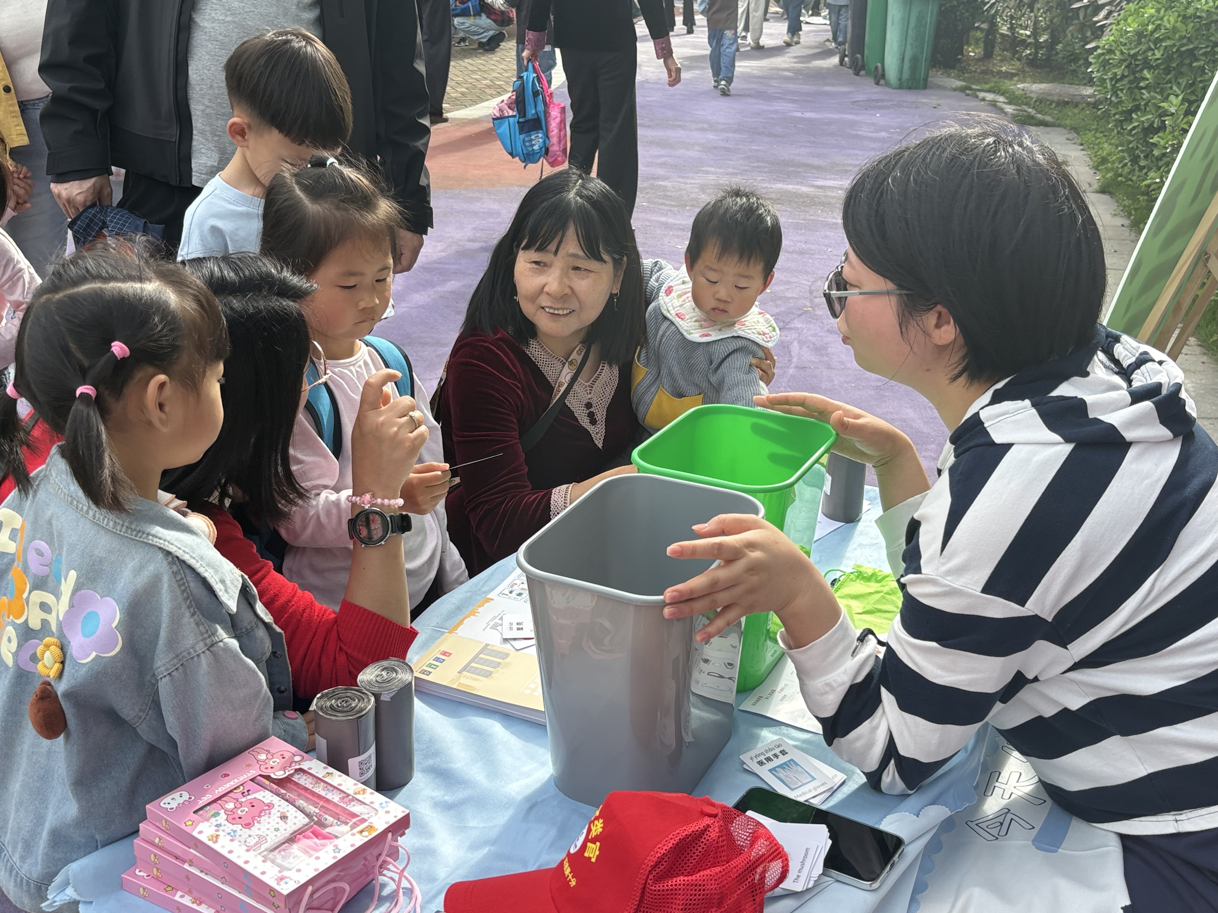 垃圾分类互动游戏环节备受欢迎,“分类小问答”让孩子们在辨别、投放中巩固分类知识;小小分类官宣传打卡活动中,小朋友头戴小红帽拍照打卡,家长转发朋友圈传播分类理念,带动更多家庭践行“两袋对两桶”。