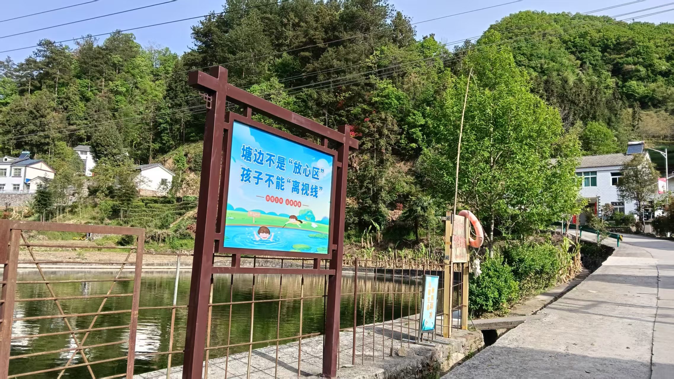 在检查现场,工作人员重点查看了各水域警示标识是否醒目清晰、救生器材是否完好无损、位置是否便于取用。对发现的设施老化、缺失等问题,现场进行了更换和补充,同时对救生圈、救生绳、救生杆等器材进行固定维护,确保紧急情况下能第一时间投入使用。“塘边不是‘放心区’,孩子不能‘离视线’”等通俗易懂的防溺水宣传牌,也在水域周边显眼位置全面布设,时刻提醒过往群众注意安全,增强防溺水意识。