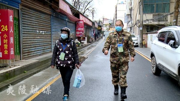 2月28日一早,宜昌市地勘铭苑物业公司地质花苑项目经理陈伟提着两袋新鲜蔬菜,来到居家隔离的独居老人宋永福家。
