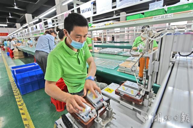 5月25日,宜昌市夷陵区东城高端制造产业园的宇隆新能源公司工人在加工制作锂电池产品。今年,宜昌市夷陵区推出“企业方舱”行动、“龙头培育”计划,深化“百名干部进百企”工程,从加大要素调度、深化银政企对接等方面为企业解困。组织百余名干部进驻310家重点企业,“一对一”“点对点”为企业推行应急金融品种,1至4月帮助企业解决融资、用工和销售难题近500件,让企业开足了马力加紧生产。夷陵区拥有企业实体10908家,涵盖数十个领域。该区积极兑现支持中小微企业共渡难关22项政策,通过与宜昌金融应急服务中心的网上金融服务大厅对接,扩大中小微企业选择面和获贷面,探索推出应急订单贷、技改支持贷、抗疫贷、发展贷、医保贷等复工应急金融品种,各金融机构1至4月为该区实体企业发放贷款28.7亿元。