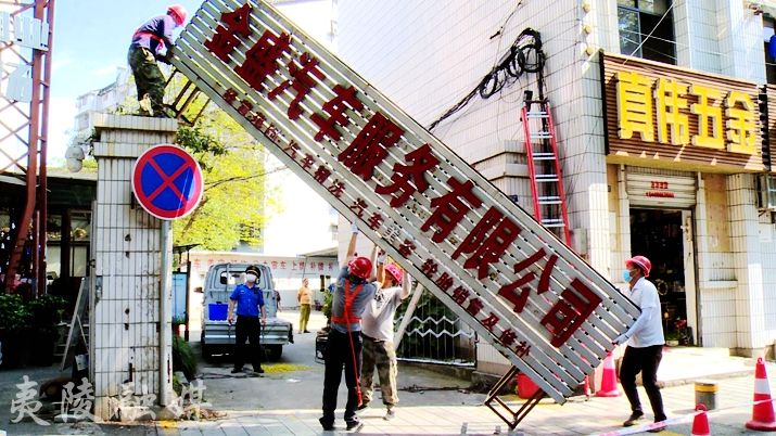 5月27日,夷陵区综合行政执法局城市管理和交通运输执法大队聘请专业施工队对夷兴大道一处有安全隐患的广告牌进行了拆除。