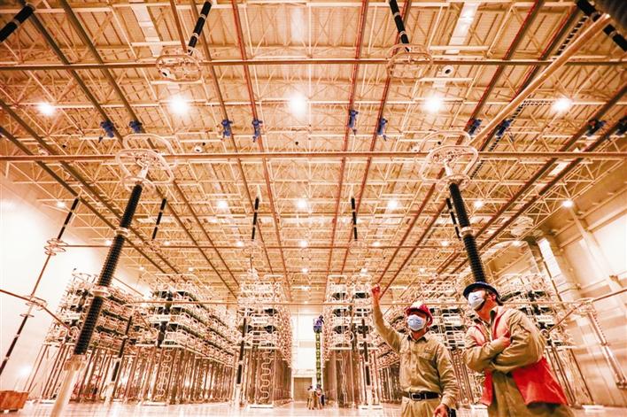 图为5月26日,渝鄂背靠背北通道换流站内,工作人员正在对设备进行年度检修。