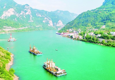 近日,位于长江三峡大坝至葛洲坝之间的湖北省宜昌市夷陵区乐天溪镇莲沱段航道整治工程项目实现全面复工复产,施工船舶全部进场,现场施工有序推进。郑家裕摄/光明图片