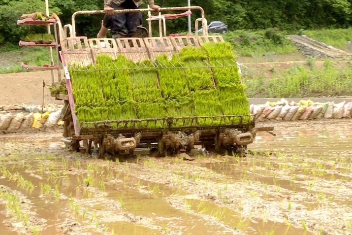 近日,记者在羊角山村看到,原先种植着玉米、土豆的旱田已经“脱胎换骨”,已然变成了肥沃的水田。田埂上,村民们一个个左手拿秧、右手抛秧,边抛边退的动作一气呵成,动作看似重复而单调,但每一抛的力度、深度、位置、方向里,都蕴含着智慧和诀窍;在轰隆隆的机器轰鸣声里,插秧机也正忙着进行插秧作业,一行行秧苗被笔直、整齐地栽种在稻田里,一片新绿,一天时间就可以完成二十几亩的水稻栽种工作。樟村坪镇羊角山村党支部书记、村委会主任王宗刚说:“这里的海拔是1320米,过去我们这个地方也是水田,种植的是传统的冷水红,因为产量比较低,后面农民就改种成苞谷了。现在随着乡村游的兴起,又从旱田改成水田,专门来种植稻米冷水红,它口感非常好,营养价值也丰富,价格能卖到每斤一、二十元。”
