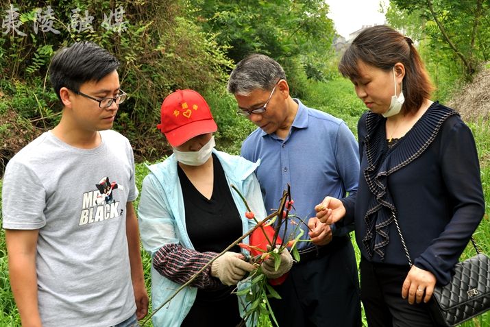 6月2日,天气炎热,夷陵区鸦鹊岭镇简垱河流域新场村段,2名村民正穿着防护服,提着塑料桶,用枝剪捕捞河中水草杆上的福寿螺卵块。“你看,还不到1个小时,捕捞的红色卵块就有了大半桶。”村民提着塑料桶介绍道。