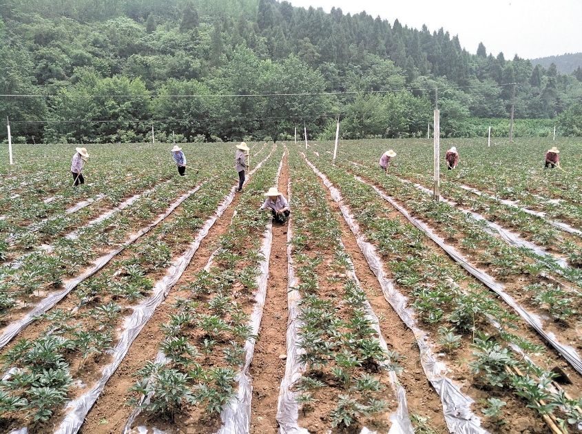 5月30日,宜昌夷陵区龙泉镇雷家畈村芍药基地,农民正在管护药草。