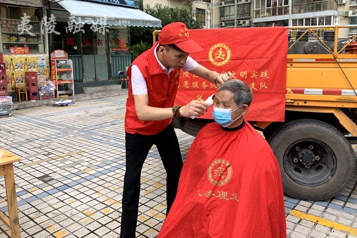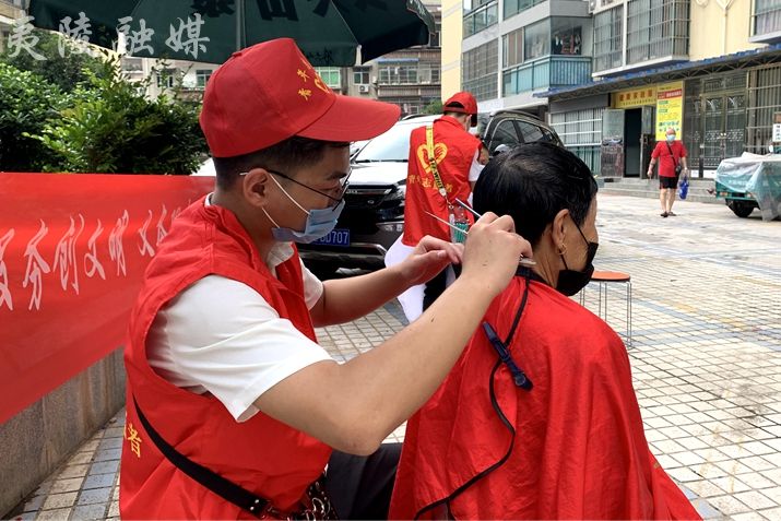 6月15日,共青团夷陵区委联合美尔雅新时代文明实践志愿服务队在金都御林小区开展义务剪发活动,为夷陵区文明城市创建“四连冠”贡献青年力量。