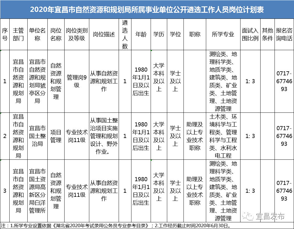 宜昌市自然资源和规划局所属事业单位2020年公开遴选工作人员公告
