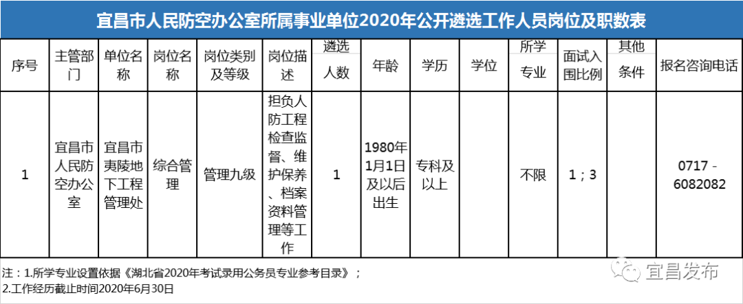 宜昌市人民防空办公室所属事业单位2020年公开遴选工作人员公告