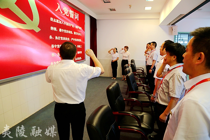 会上,全体人员起立齐唱国歌,并在医院党委书记王进的带领下,重温入党誓词,引导全院党员干部职工不忘初心、牢记使命,深刻认识到作为一名共产党员的责任感和使命感。