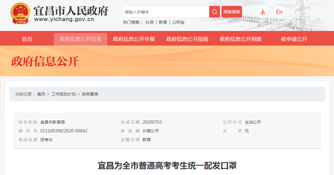 宜昌为全市普通高考考生