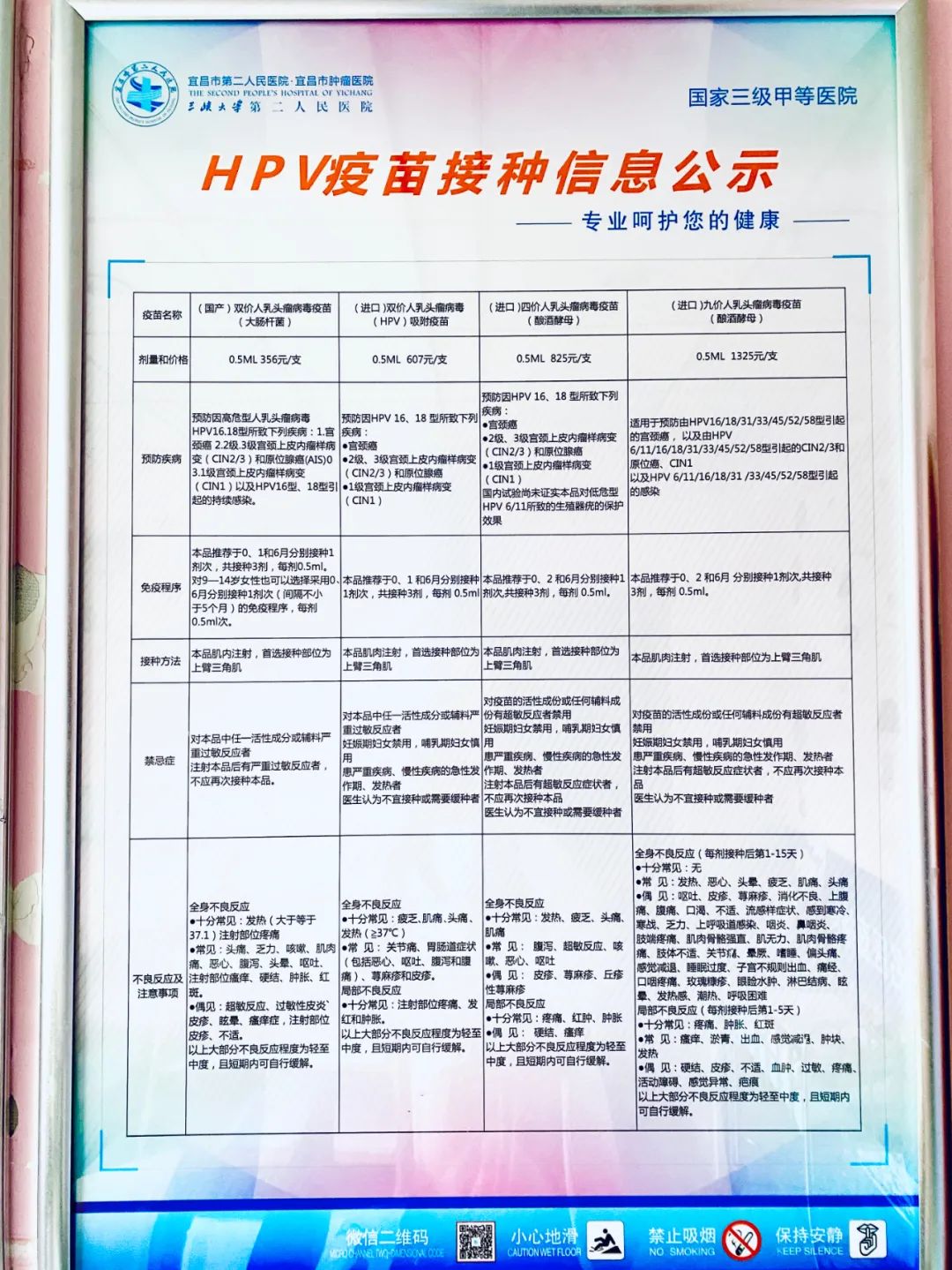 本次在宜昌预约接种的国产二价HPV疫苗,定价为356元/支,而进口二价HPV疫苗一针607元,两者价格相差近一半。同时,该疫苗适宜人群为9-45岁,且9-14岁年龄段只需要2针。