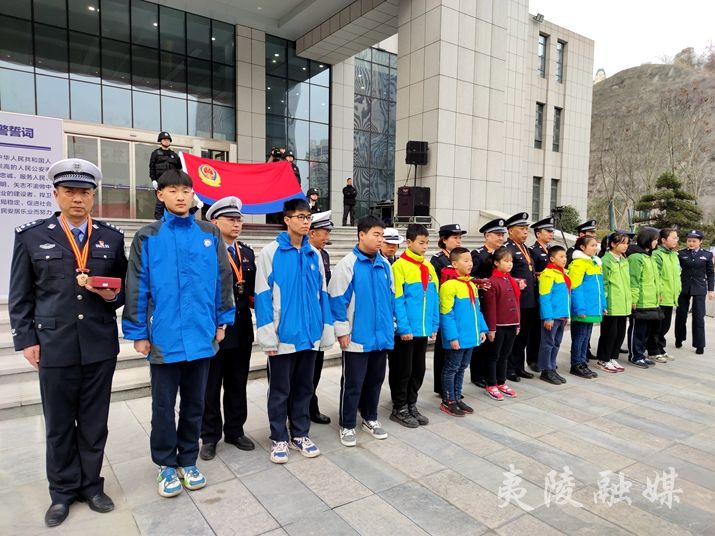 活动现场,11名1月10日出生的学生,为从警30年的民警敬授纪念牌。随后,群众们走进警营,近距离接触并了解警察生活。