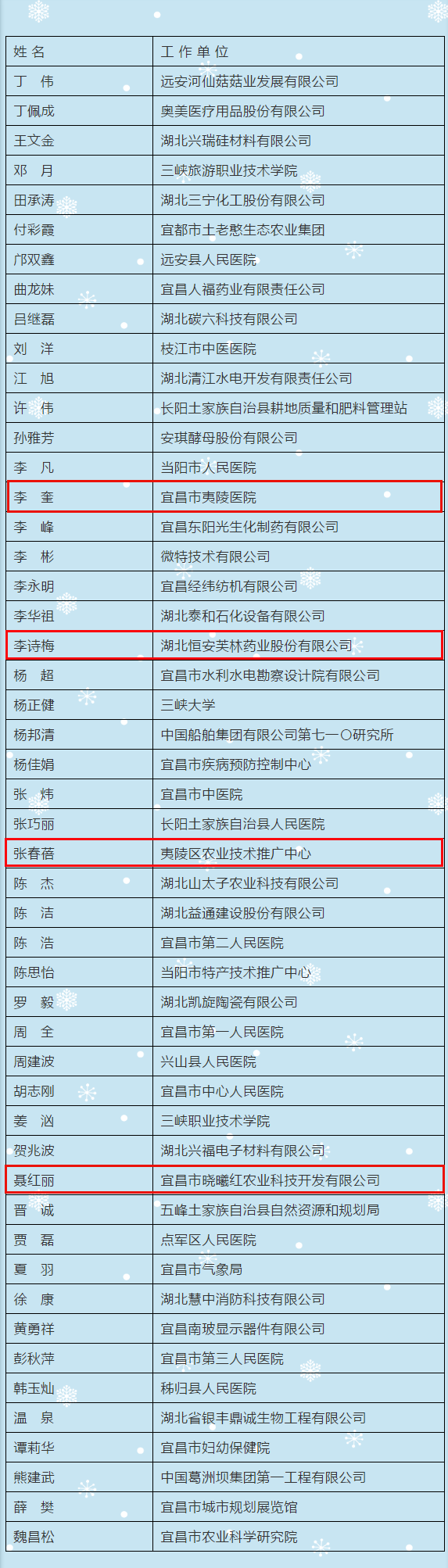 为深入贯彻落实习近平总书记关于科技创新和人才工作的重要指示精神,鼓励和引导全市青年科技工作者切实增强“干在实处、走在前列、当好引擎”的行动自觉,积极投身长江经济带生态优先绿色发展的主战场,为宜昌高质量发展作出新贡献。市委组织部、市人社局、市科协联合开展宜昌市优秀青年科技工作者评选活动。经推荐申报、评审、公示等程序,确定丁伟等50名同志为宜昌市优秀青年科技工作者。