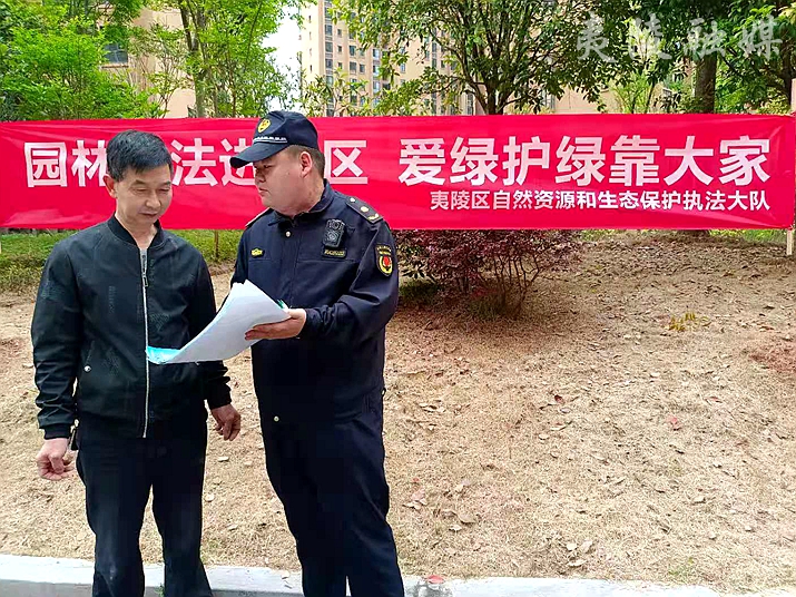 连日来,夷陵区综合行政执法局自然资源和生态保护执法大队组织园林中队执法队员深入城区各社区和居民小区,开展园林普法宣传活动,不断提升市民爱绿护绿法律意识,倡导大家齐抓共管维护城市绿化环境。