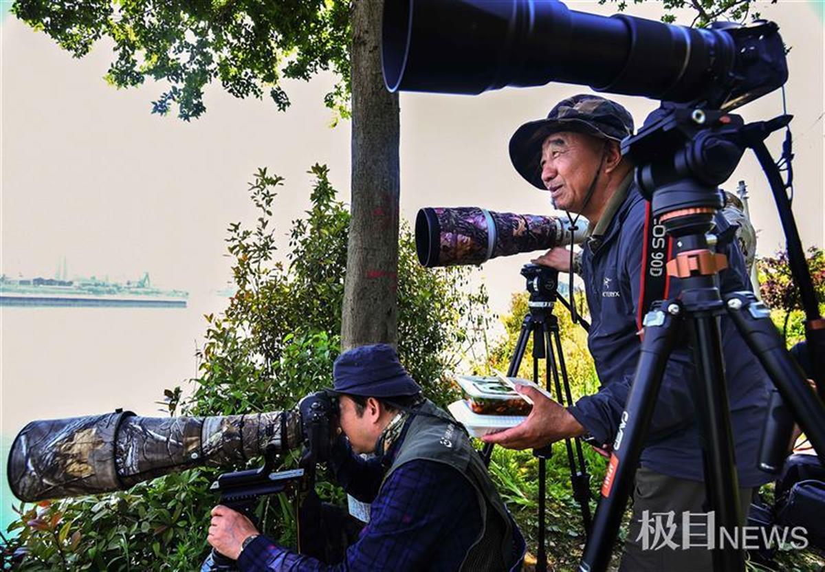 午饭时,摄影家们还在盯着水面,不想错过江豚的“表演”