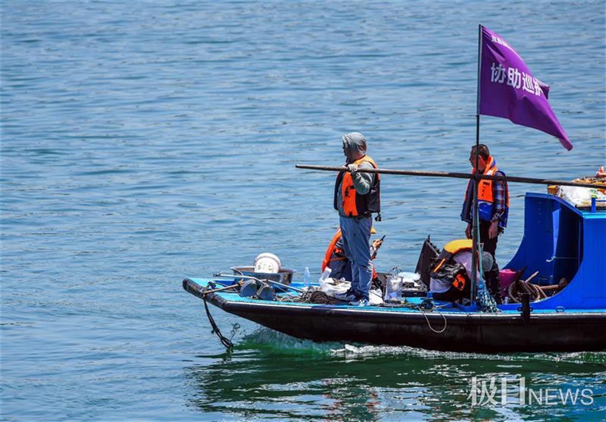 宜昌长江大保护的志愿者巡逻船,在江上巡查