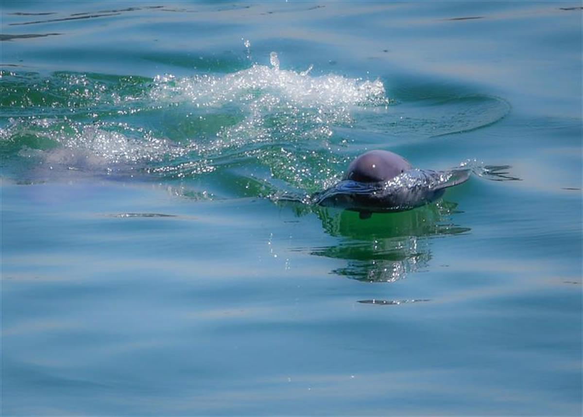 江豚飞跃,在此优良水质的江段,经常可见到