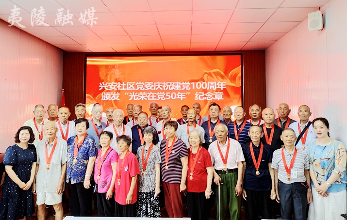 今年是中国共产党成立100周年,为了表达对老党员的敬意,小溪塔街道兴安社区党委于6月17日上午举行了“庆祝建党百年活动——光荣在党50年”纪念章颁发仪式,为辖区部分党龄50周年的老党员们发放“光荣在党50年”纪念章。