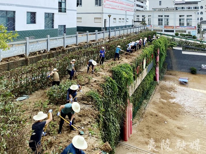 7月21日,夷陵区教育局组织30余名机关干职工赶赴三峡初中救灾。