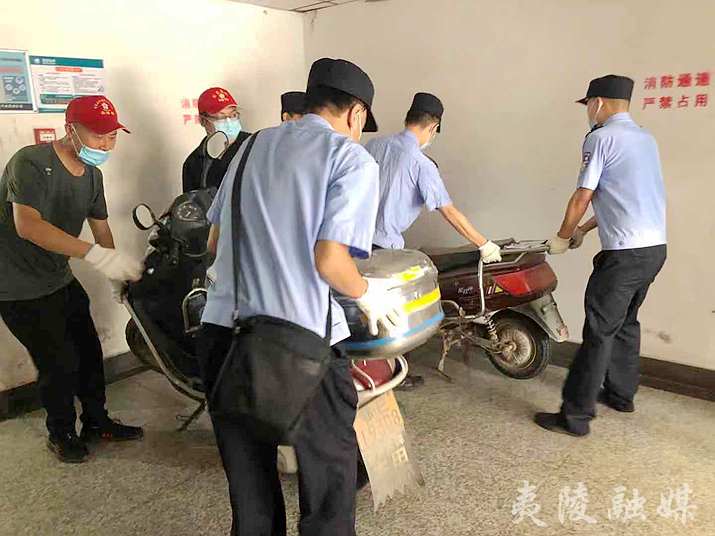 联系社区、派出所民警集中整治楼道摩托车和电动车↓↓↓