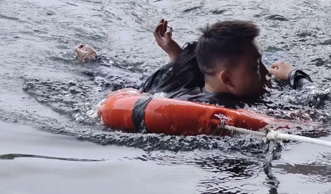 面对落水女子
