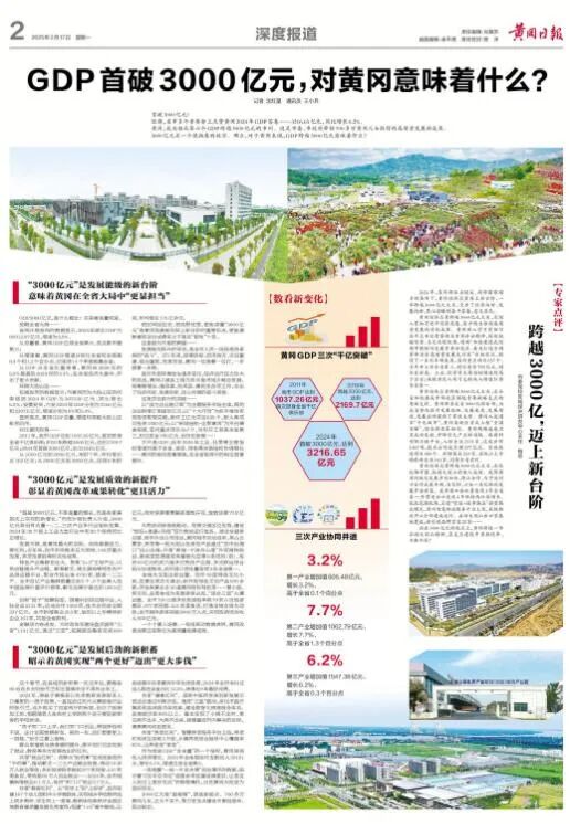 近期,省市多个重要会上点赞黄冈2024年GDP答卷——3216.65亿元,同比增长6.2%。