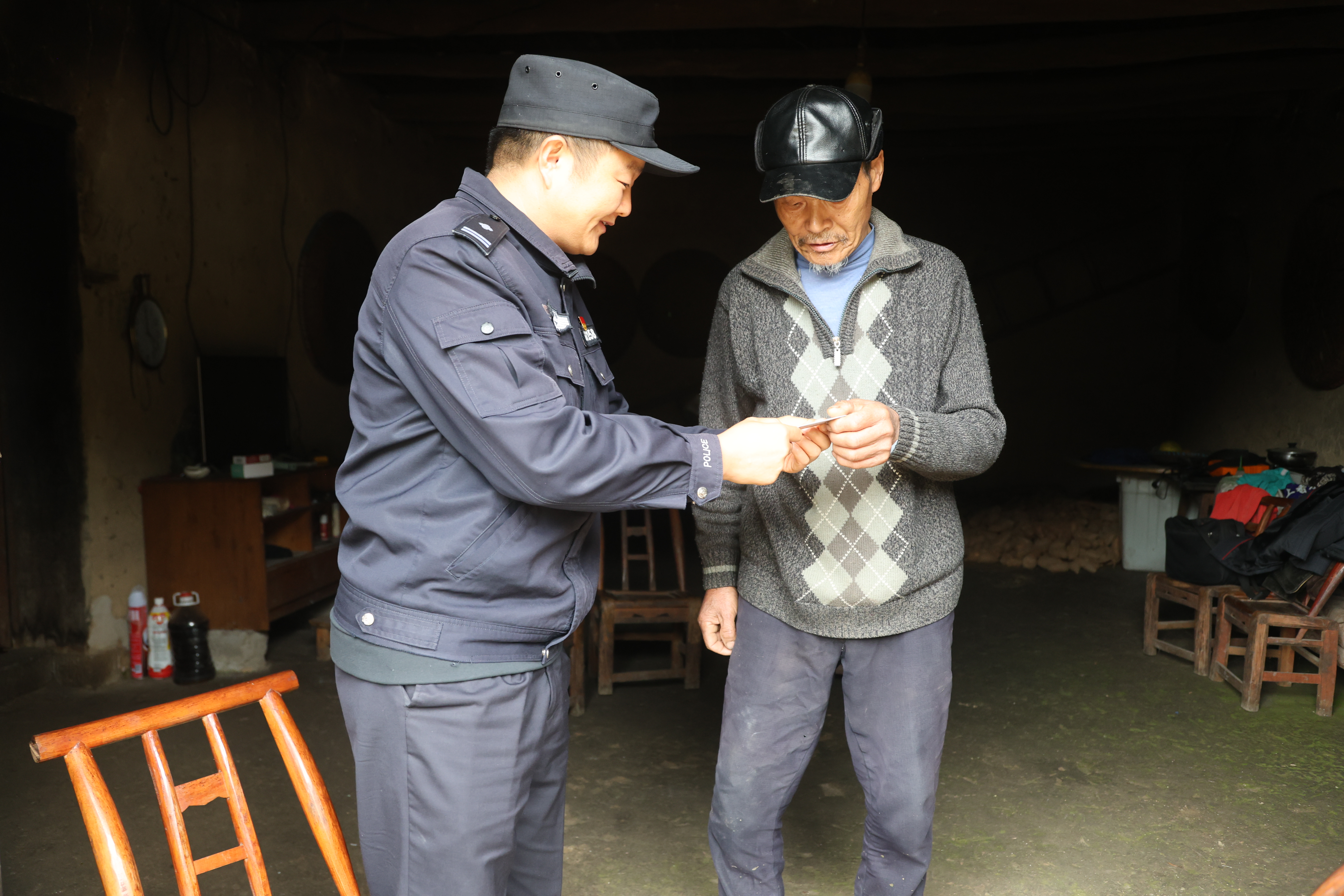原来,派出所民警在开展证件办理回访工作时得知,辖区卢礼道老人年事已高,腿部不便,妻子因患病智力受损,两人行动都十分艰难,而白水头村距离乡镇有20余公里,派出所民警在梳理到期身份证信息时,得知卢礼道老人的特殊情况后,当即决定特事特办,为老人提供“送证上门”服务。此前已上门为老人采集了身份证照片、完成信息录入,在新证办好后,民辅警第一时间驱车赶往老人家中送证。