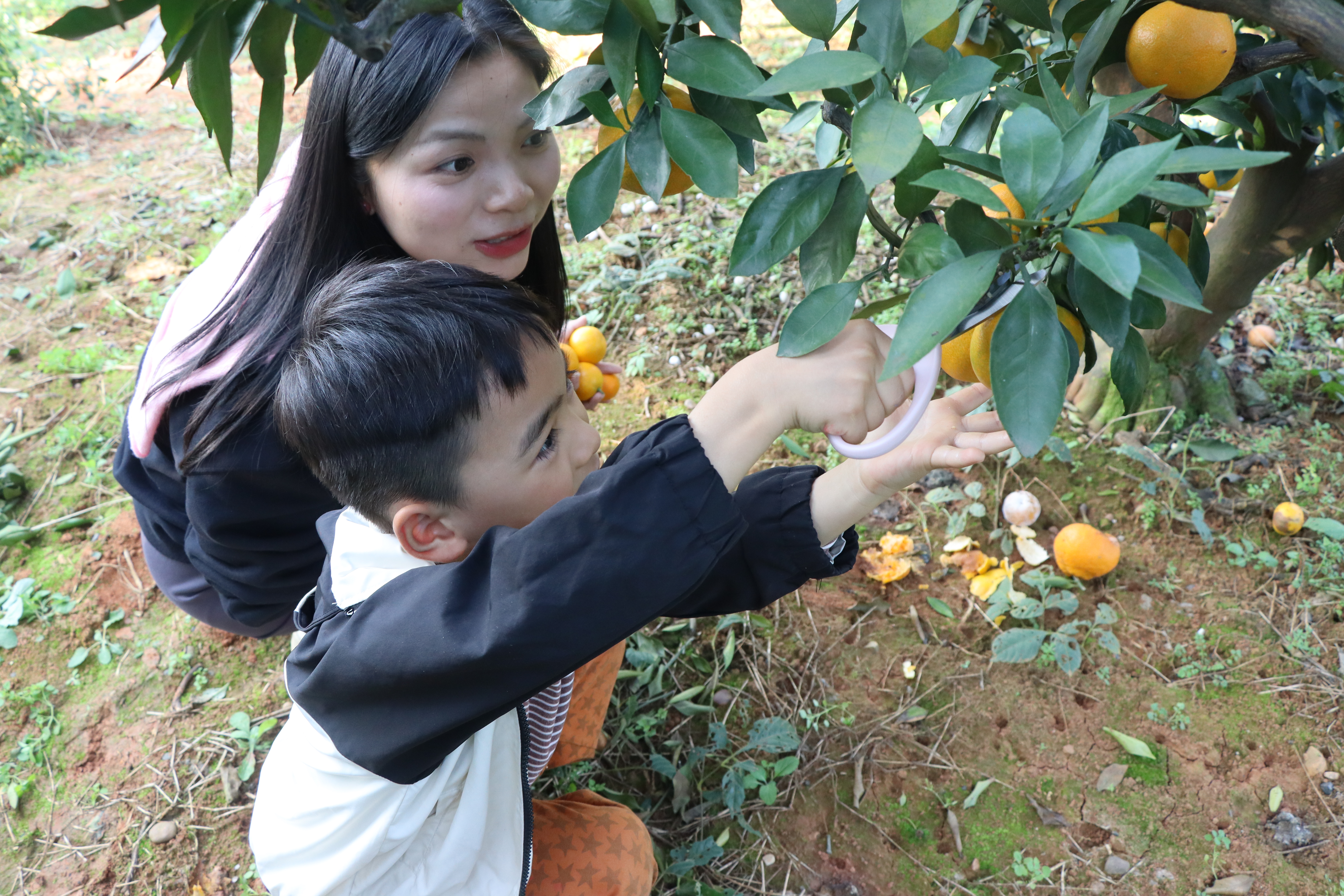 在金黄的橘园里,孩子们在家长的温情陪伴下,亲手摘下挂满枝头的柑橘,感受丰收的喜悦。专业讲解员为大家细致科普柑橘的生长周期、养护知识与正确采摘技巧,孩子们听得津津有味。随后,亲子家庭走进柑橘博物馆,通过实物展示、图文介绍,深入了解柑橘的多样品种与广泛用途,拓宽了知识视野。充满趣味的“橘子沉浮”科学实验环节,让现场氛围愈发活跃。在老师的引导下,孩子们亲手操作、仔细观察,好奇地探究橘子在水中沉浮的奥秘,对自然现象的探索热情被充分点燃。