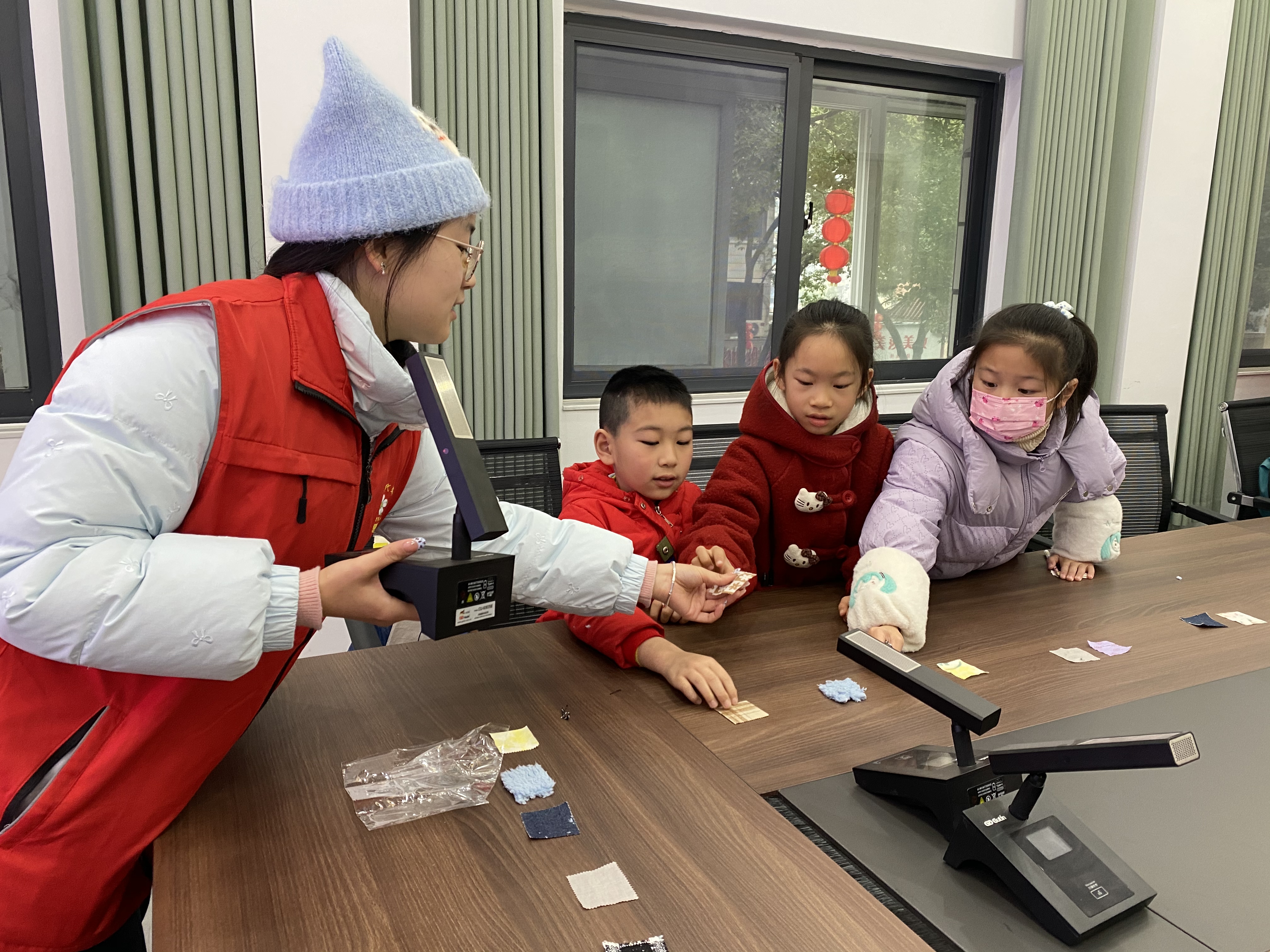 2月3日,朝阳社区爱心托管班开展“暖冬童行”纺织启蒙课。志愿者带来纯棉、牛仔、亚麻等五种布料,引导孩子们亲手触摸、对比,感知不同材质的触感与用途,在互动中将面料知识与日常衣物联系起来,课堂生动有趣。
