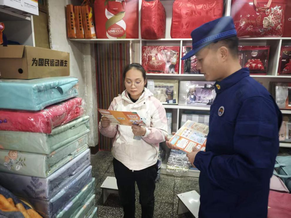 针对农村院落、沿街商铺、物流仓储、老旧小区等火灾易发区域,联合宣传组开展“敲门行动”与入户宣讲,逐户讲解禁放要求与家庭防火要点,叮嘱居民规范用电用气、及时清理阳台楼道可燃物,共同消除安全隐患。同时,工作人员面向商户经营者宣讲禁售、禁存规定,引导落实主体责任,坚决杜绝非法经营行为,从源头管控风险。