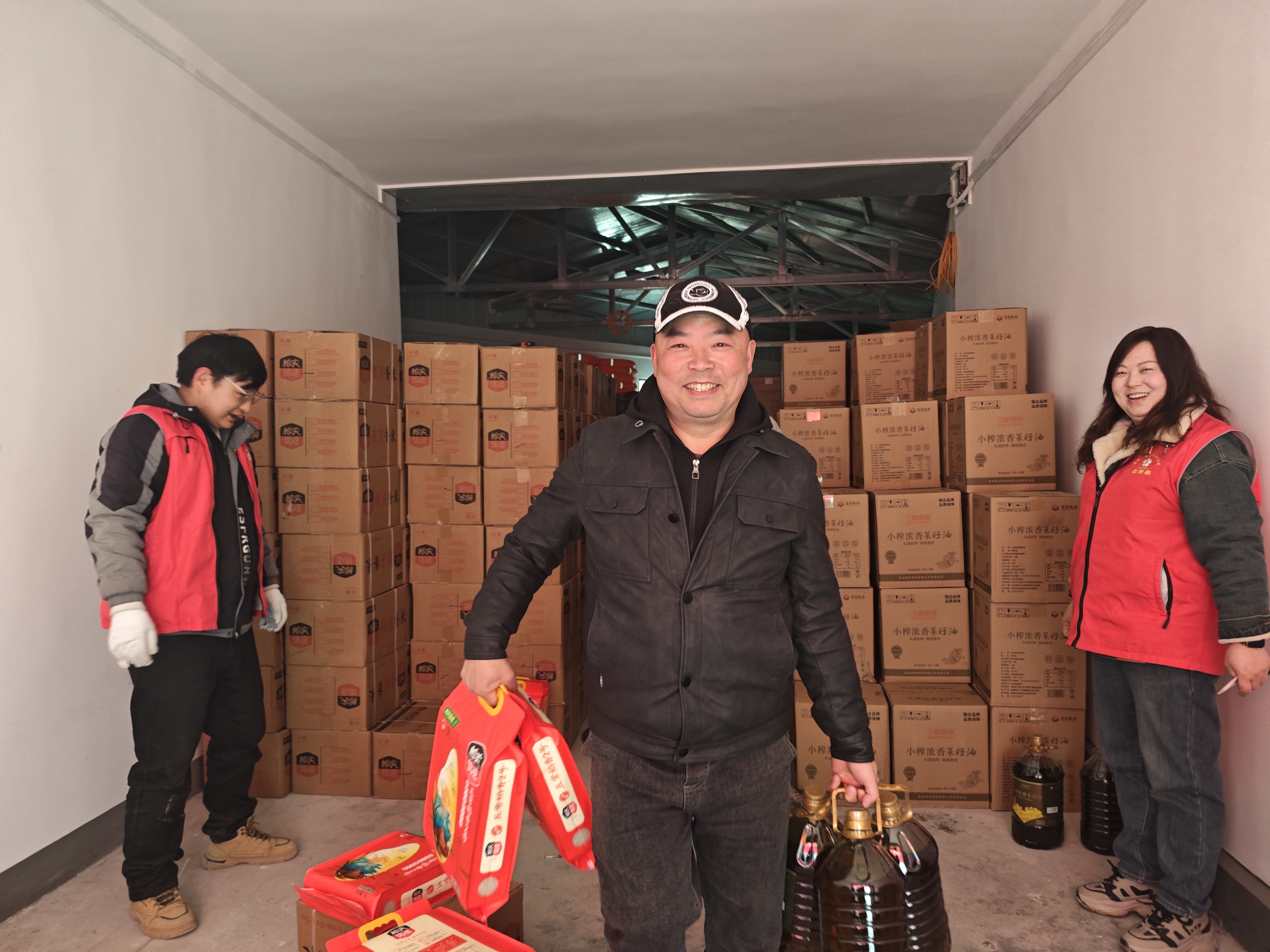 发放现场,工作人员提前完成信息核对、物资分装,引导村民有序签字领取,老人们手提米油笑容欣慰,邻里间相互招呼问候,一派其乐融融的景象。“每年春节前都能领到村委会的米和油,这份关怀特别实在!看着村里日子越过越红火,我们心里别提多暖和了。”