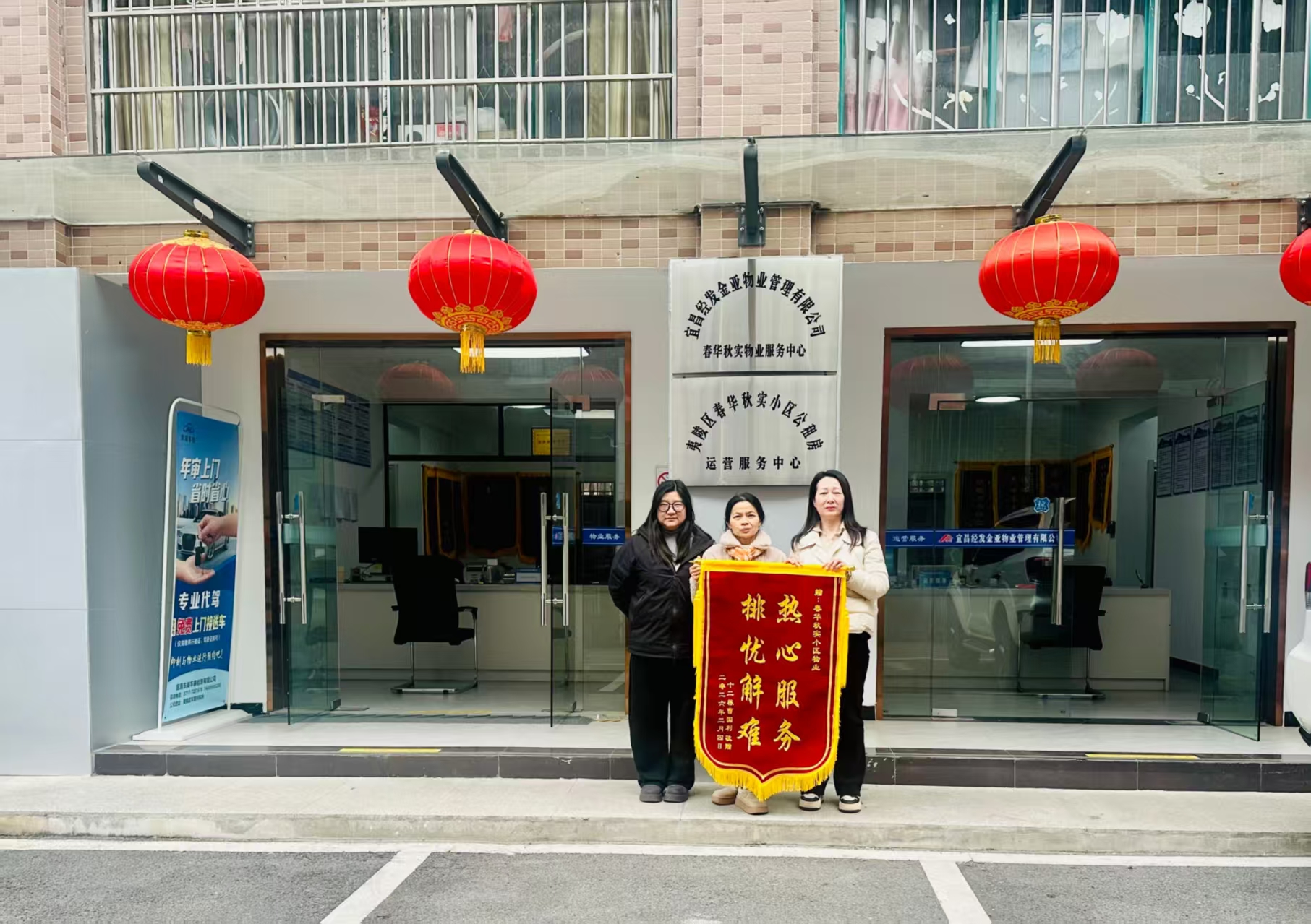 2025年12月30日中午,小区2号楼特殊住户因新换轮椅不适应,在小广场意外侧翻。物业工作人员见状火速上前,合力扶正住户与轮椅,物业主任更是细心帮忙安装好轮椅电池。得知住户需居家直播,工作人员主动入户,全程耐心协助搭建背景幕布、调试电脑设备,用贴心服务解了住户燃眉之急,住户专程送旗致谢。