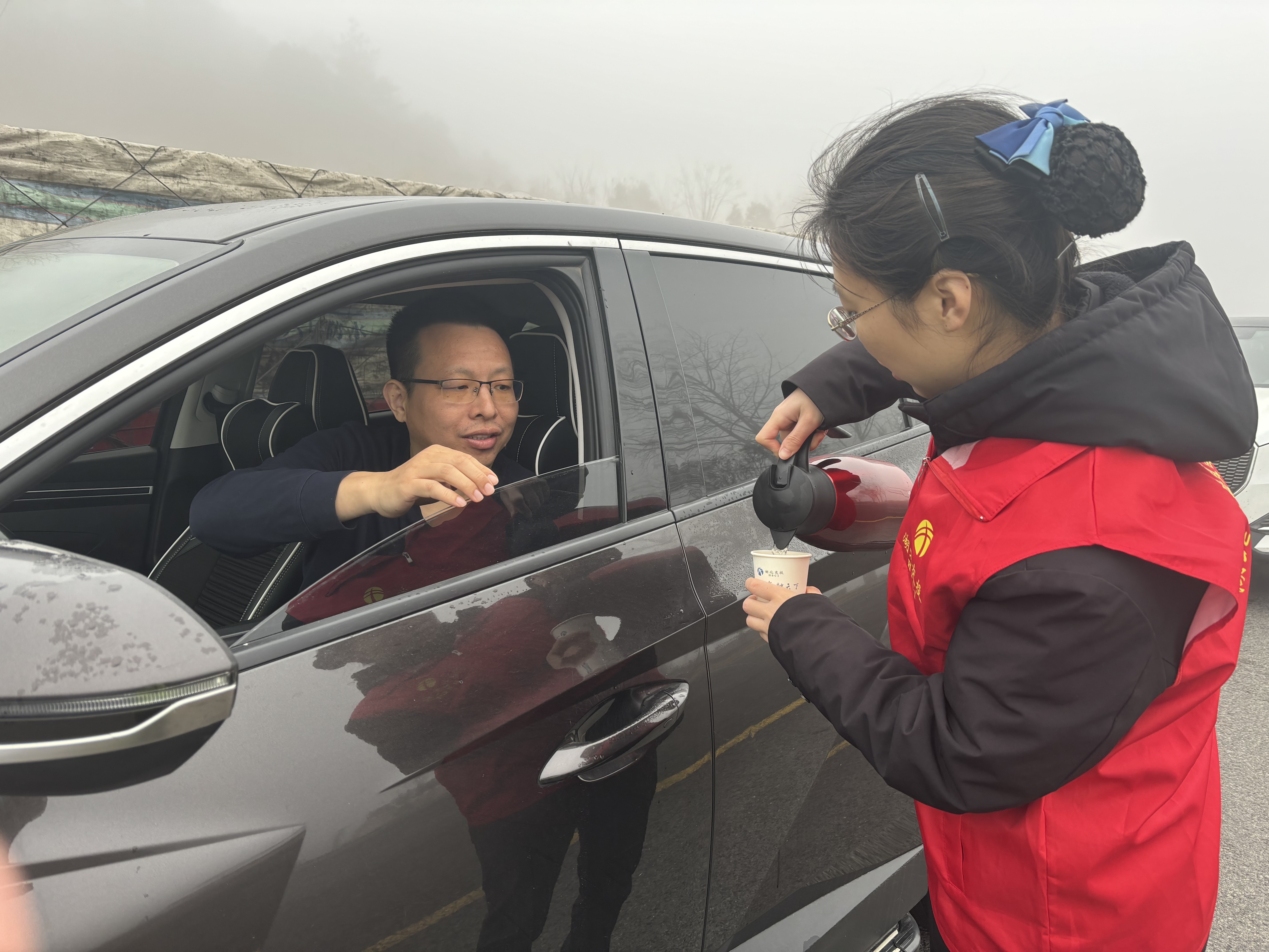 节日期间,身着红马甲的“峡江高山兰”志愿者们成为高速路口一道亮丽的风景线。他们搭起便民服务台,将热水、修车工具、行车指南送到司乘手边。这9天里,志愿者们用一句句耐心的解答、一次次热情的援手,化解了旅途的疲惫,传递着湖北交投的窗口温度。