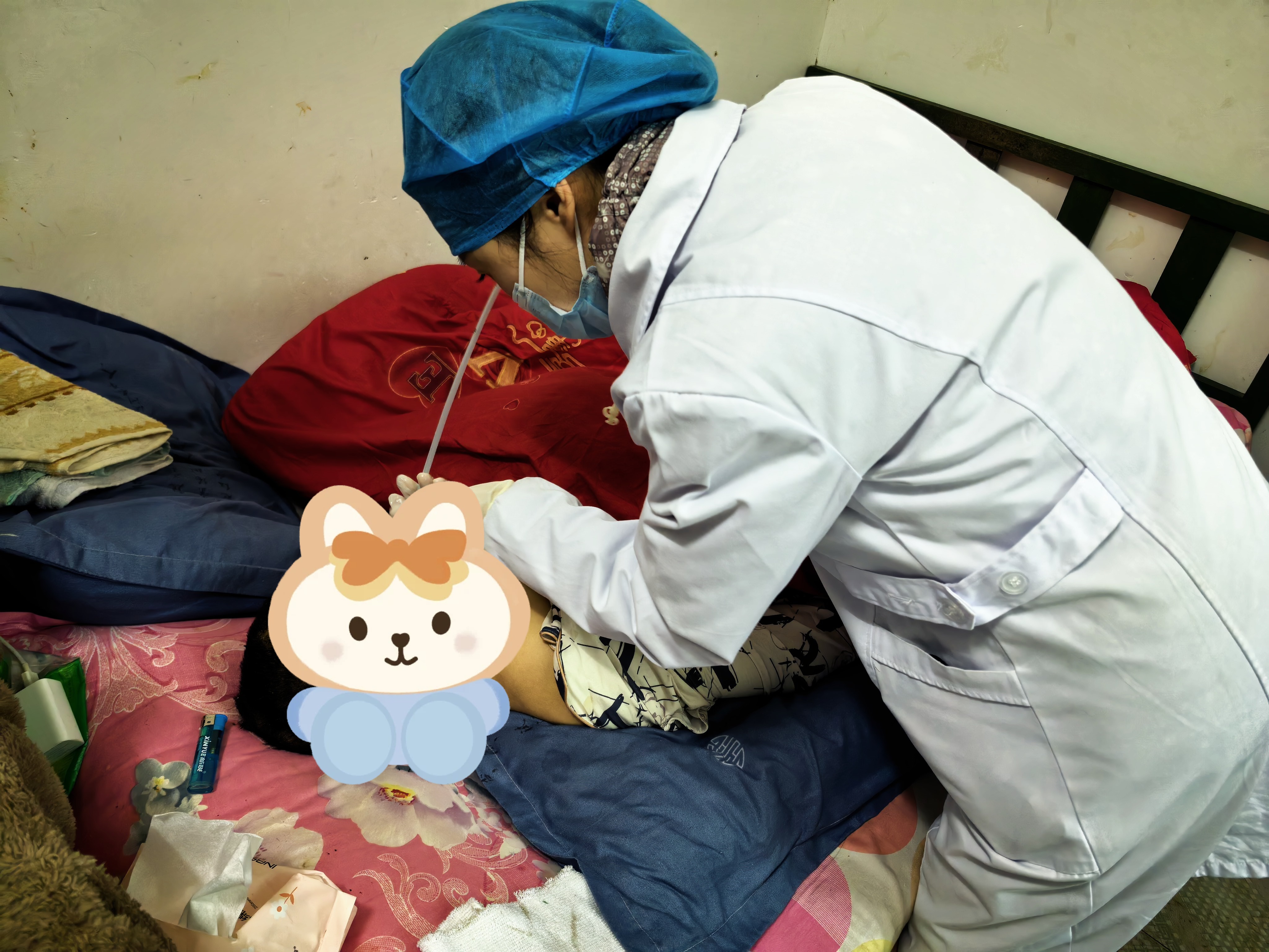 梁女士因脑出血术后长期卧床,需长期留置胃管、尿管,同时伴有气管切开,家属自行护理难度大,往返医院更换管道、学习照护技能极为不便。了解到患者实际困难后,黄花镇卫生院迅速安排人员上门,顺利为患者完成胃管、尿管更换。护理过程中,医护人员还结合患者居家康复需求,为家属开展一对一专业指导,手把手示范气管切开护理、皮肤压力性损伤预防、各类管道日常维护与观察等核心照护技能,耐心解答护理疑问,叮嘱康复注意事项,帮助家属熟练掌握规范照护方法。