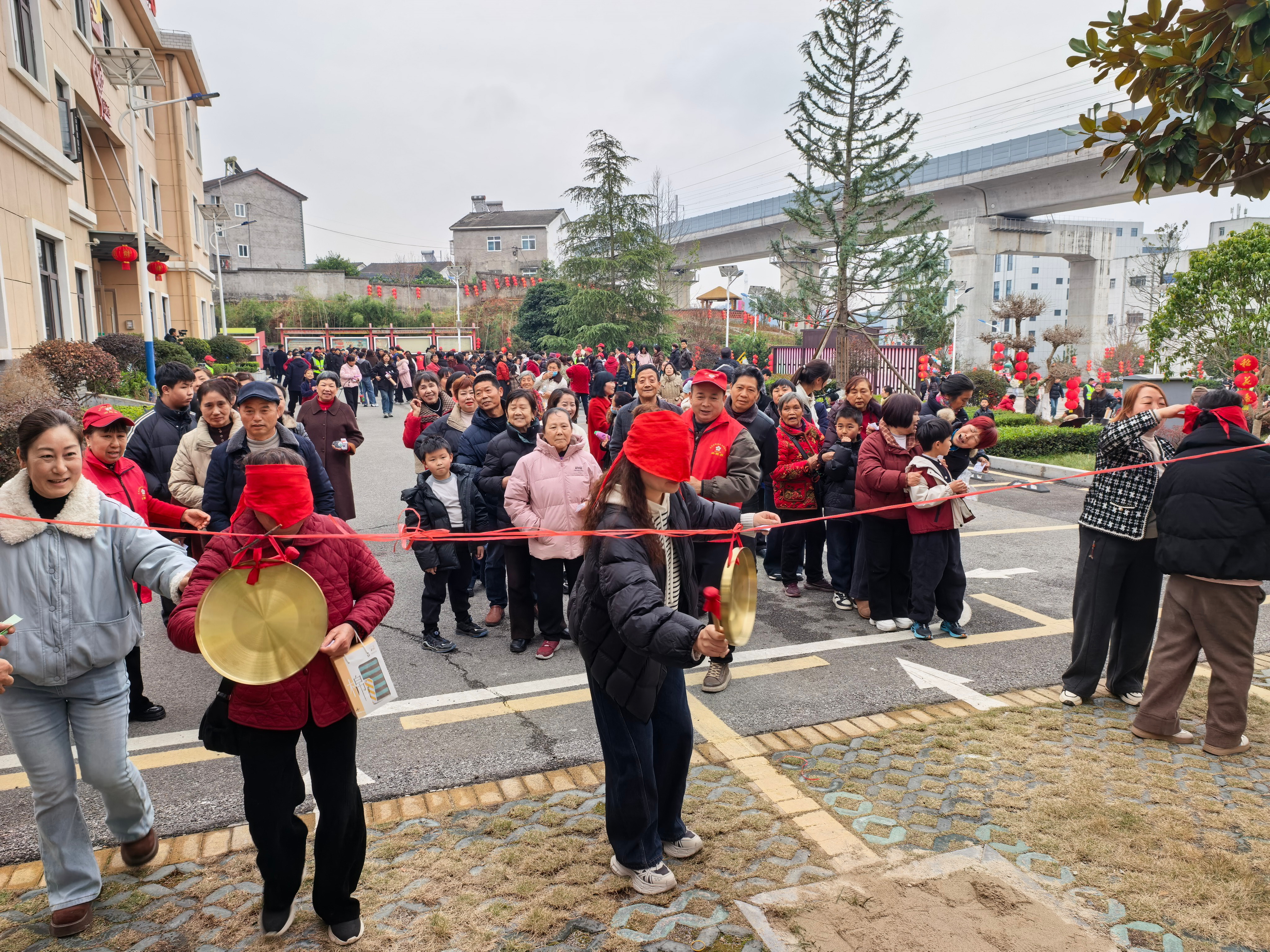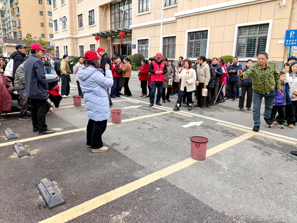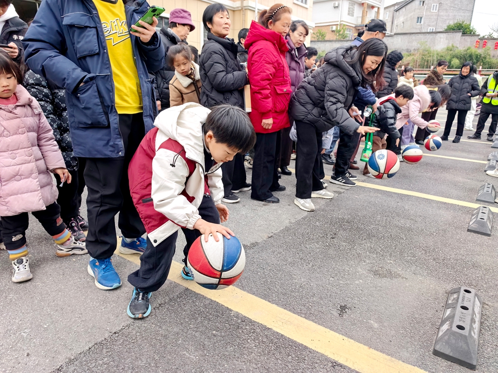 在趣味套圈区,村民们手持套圈,瞄准两米外的目标,轻轻一抛,套中者欢呼雀跃。“中了中了!我这手气今天可以啊!”刚套中一个小玩偶的年轻小伙举着奖品向同伴炫耀,引来一阵善意的哄笑。丢沙包场地同样热闹,大家站在三米外的横线处,将沙包奋力砸向矿泉水瓶,砸倒即有奖品;蒙眼敲锣最是考验方向感,参与者蒙上双眼原地转两圈后,摇摇晃晃走向八米外的大锣,一锤敲响的瞬间引来满堂喝彩。原地拍球区里,孩子们屏息凝神,一分钟内拍球50个的目标虽不轻松,但掉球后捡起继续的坚持精神赢得大家点赞;投壶项目则透着几分雅趣,参与者站在两米线外,将三支箭依次投入壶中,投入一支便喜笑颜开。