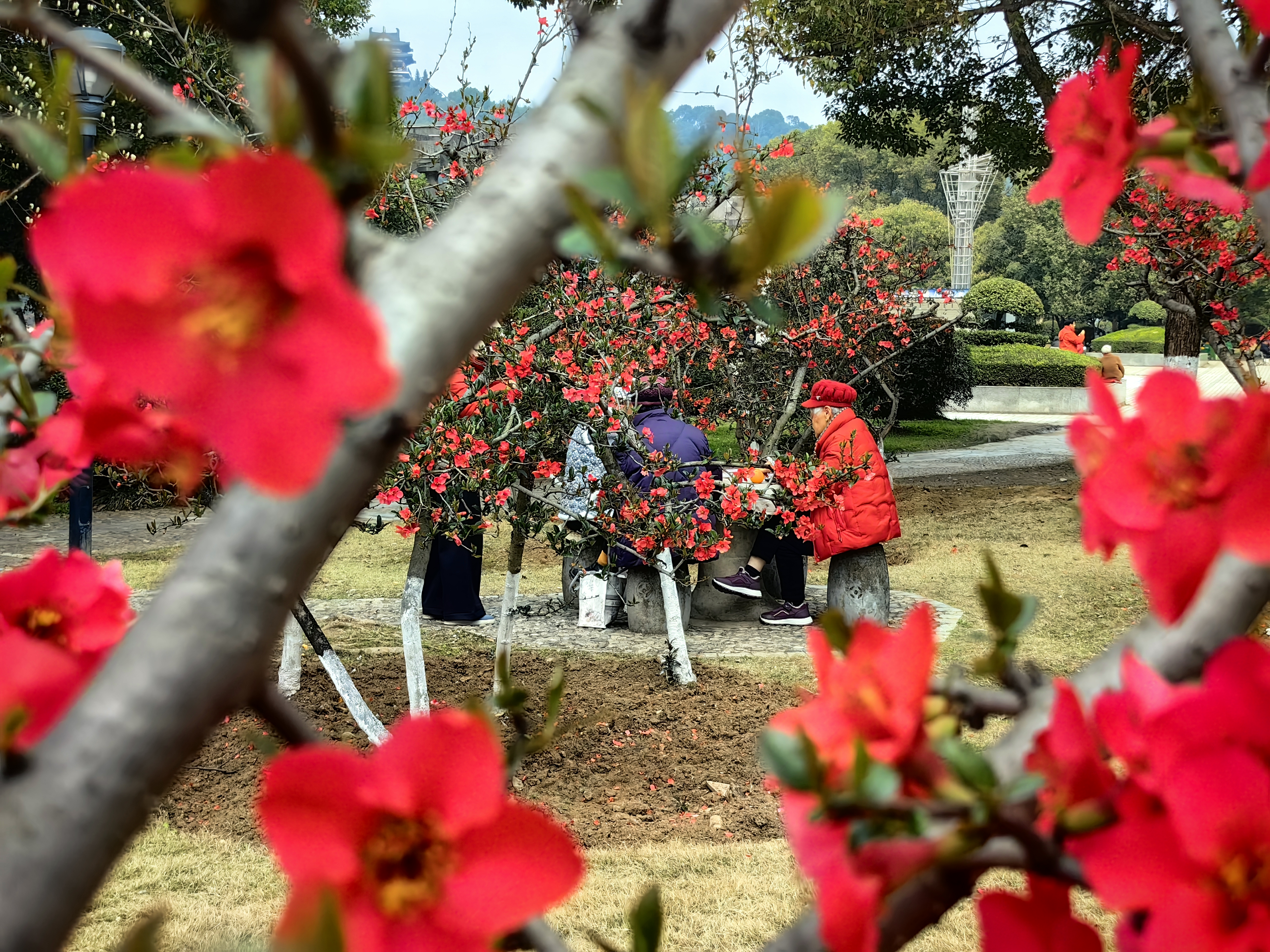 明媚春光下,游人驻足花间,拍照打卡、细嗅花香;老人们三五成群,娱乐休闲,在花香中享受闲适的时光;孩子们追逐蜂影,在花径间嬉闹,欢声笑语为春日增添了活力。大家在这一方美景里,尽情享受着春日的美好。